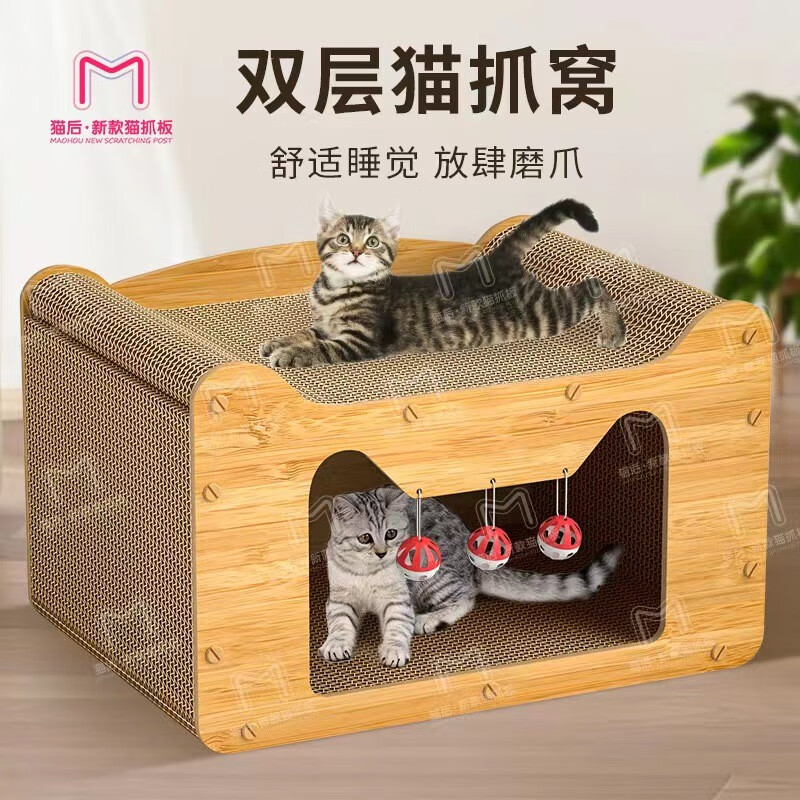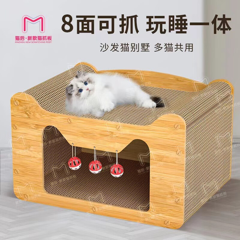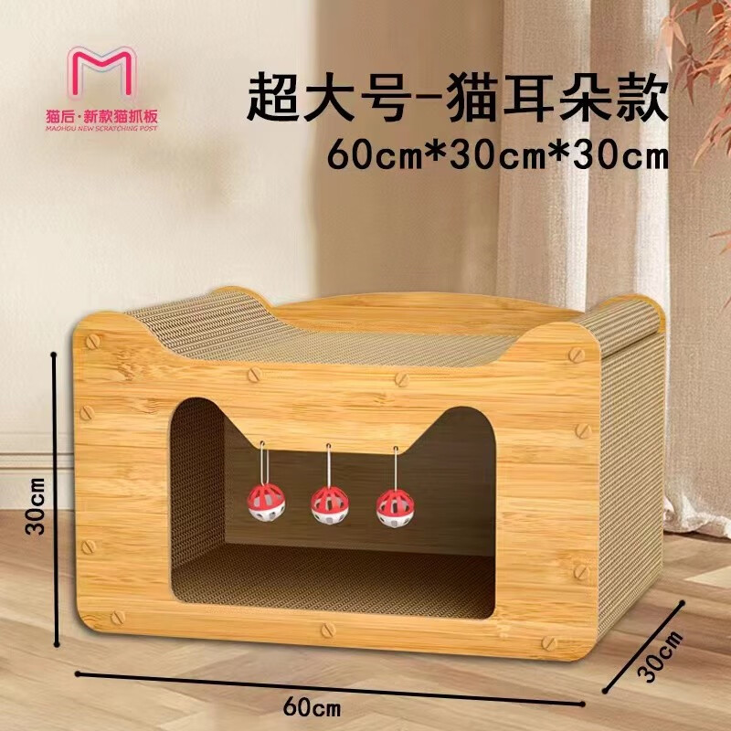 猫后宠物玩具猫抓板窝不掉屑猫抓盆瓦楞纸猫咪玩具防猫抓磨爪板大型猫窝圆形碗形猫抓板椭圆l形猫抓板立式 特大沙发猫屋60长30宽30高cm