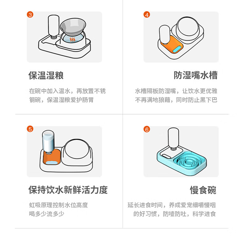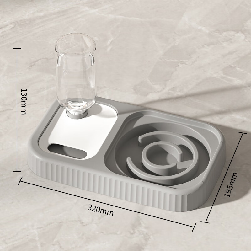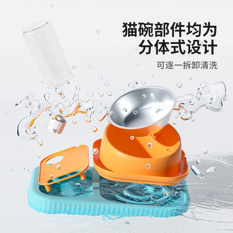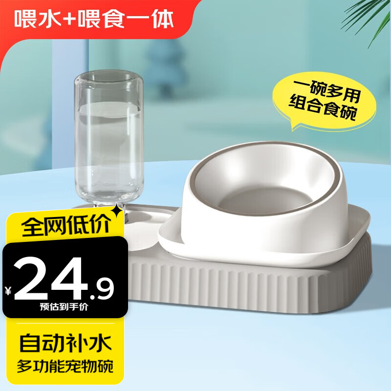 宠初元猫食碗猫食盆自动饮水机宠物喂食器狗饭碗不锈钢双碗护颈椎防湿嘴 整套组合碗(灰白色)