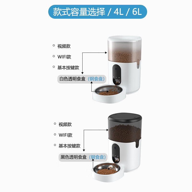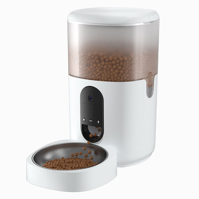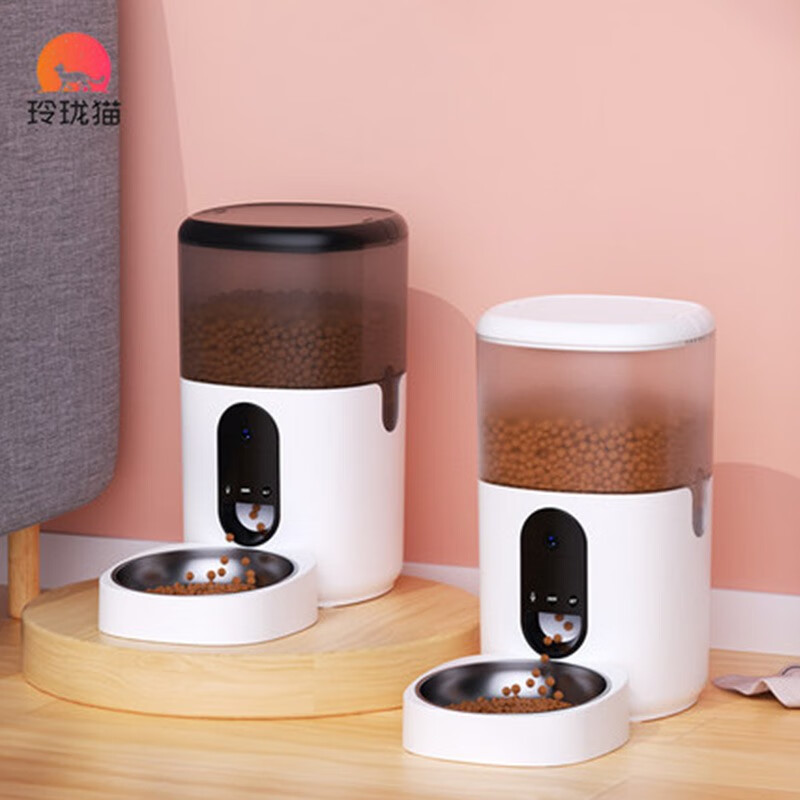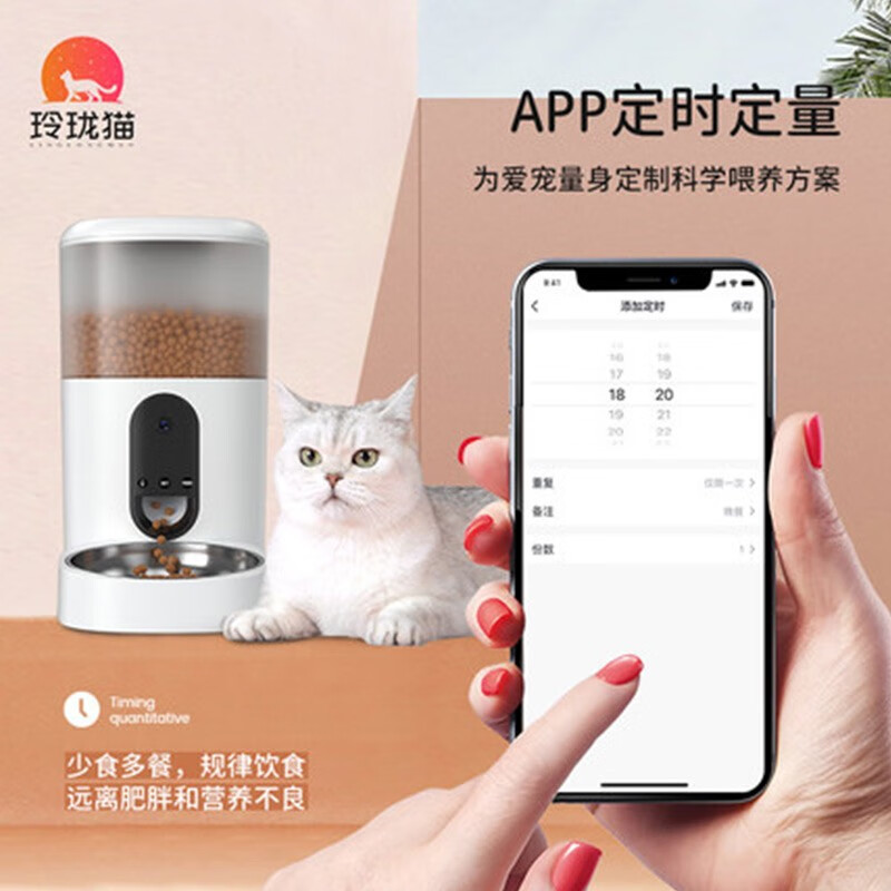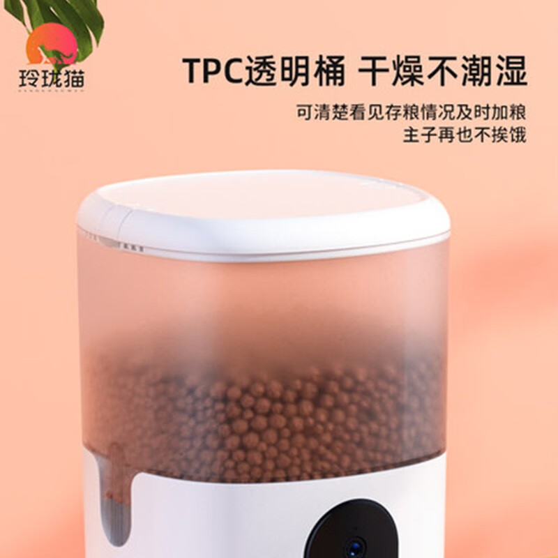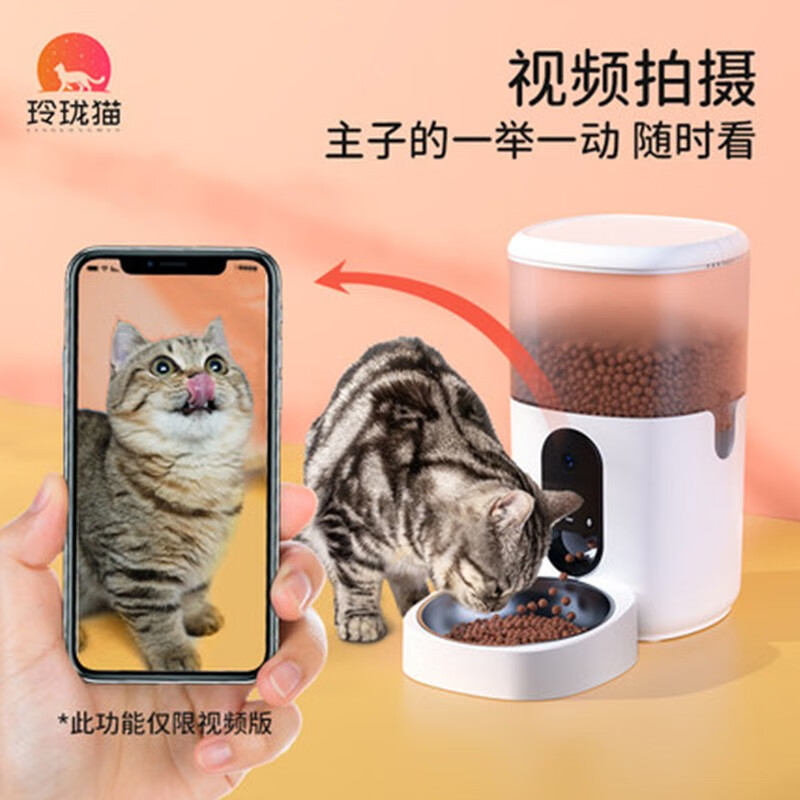 玲珑猫自动喂食器猫咪定时定量智能宠物猫粮狗粮投喂机远程控制 新升级-视频智能款-4L 白色透明食盒