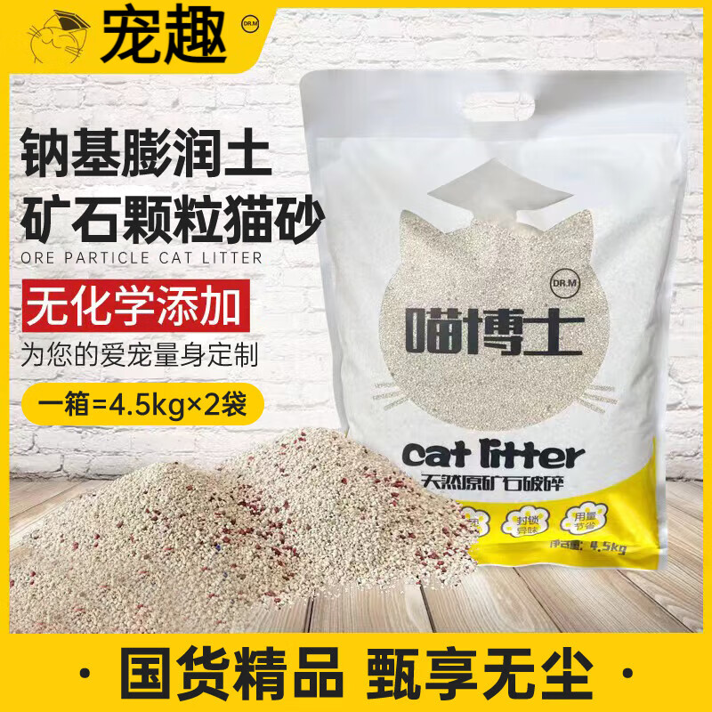 宠趣喵博士天然矿石破碎膨润土砂自动猫砂盆专用无尘颗粒除臭5箱45KG 原味5箱