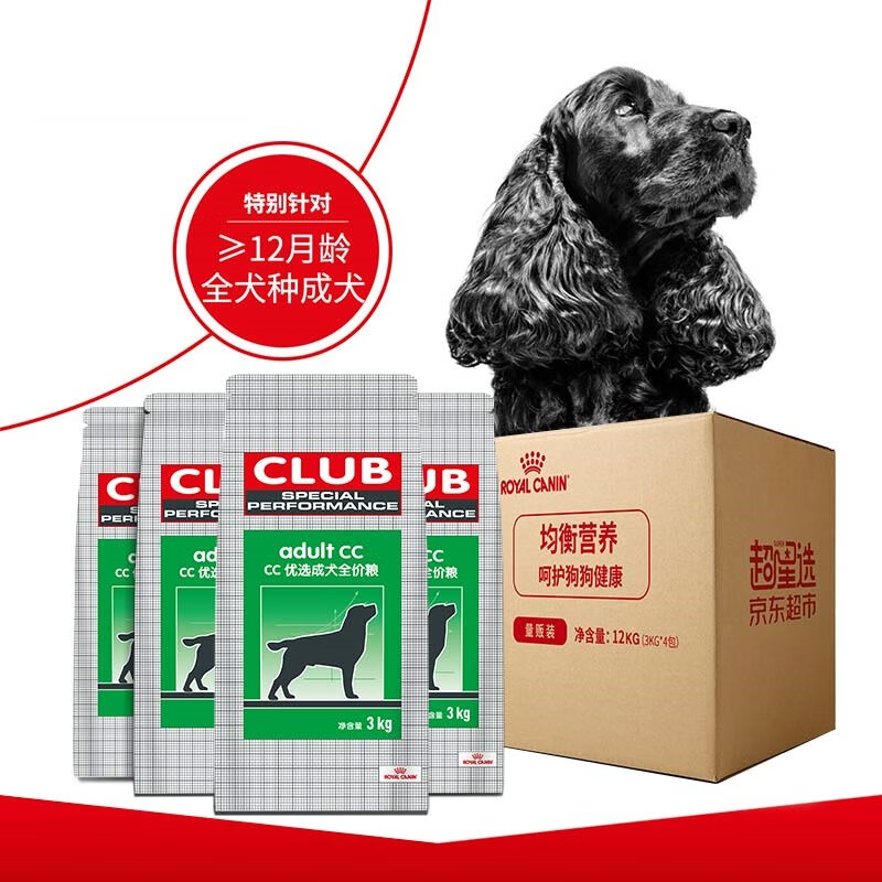 ROYAL CANIN 皇家狗粮 CC优选成犬狗粮 全价粮 12kg(3kg*4)量贩装 全犬种通用成犬粮