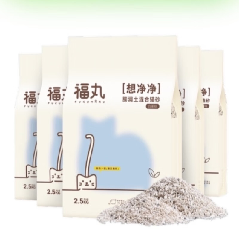 福丸膨润土混合猫砂系列防尘抑菌除臭不粘底快速结团白茶味可冲厕所 1包(2.5kg) 原味膨润土