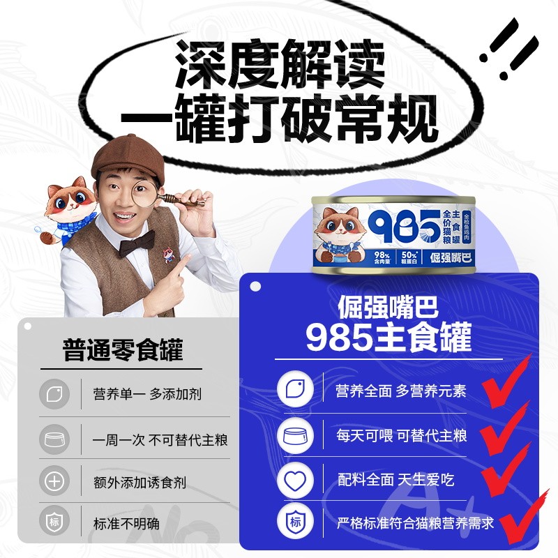 倔强嘴巴985全价猫粮主食罐金枪鱼鸡肉味 985全价猫粮主食罐头85g