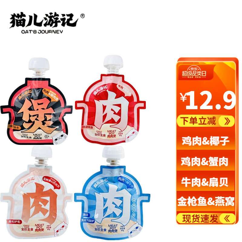布兰德猫儿游记系列肉肉煲成猫幼猫咪主食餐包湿粮咕噜酱营养增肥发腮软罐头 随机口味1袋80g