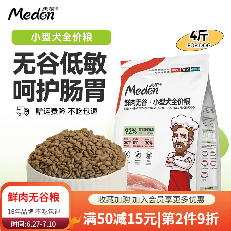 麦顿 狗粮小型犬无谷鲜肉泰迪贵宾金毛天然狗粮全犬种通用 升级款鲜肉无谷粮-小型成幼犬 2kg