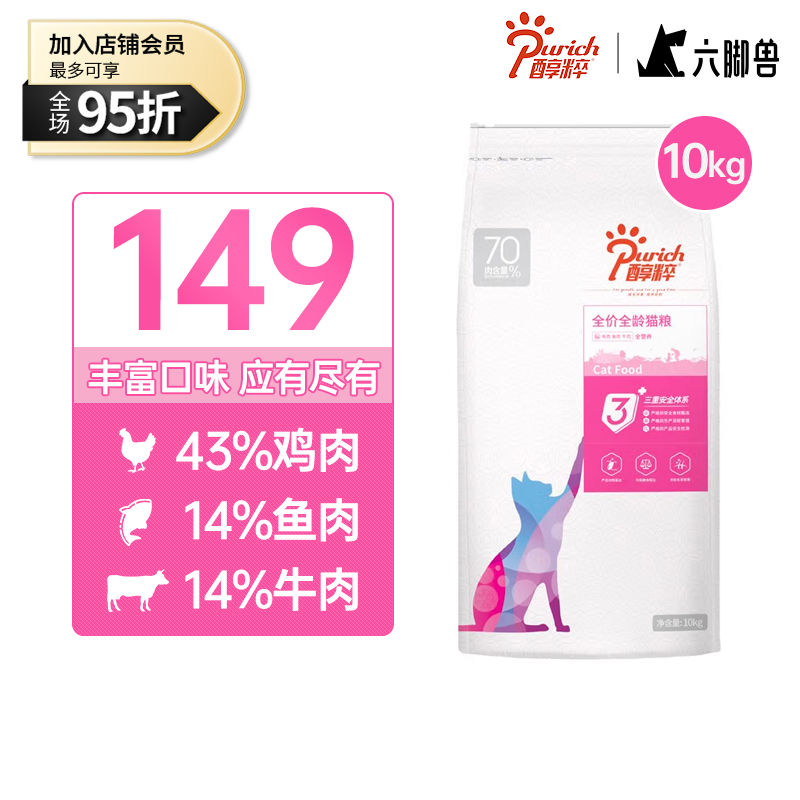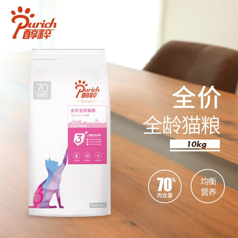 醇粹 金标全价猫粮 原切冻干鸡胸肉 无麸质70%肉含量添加鸡肉冻干 全价全龄 10kg