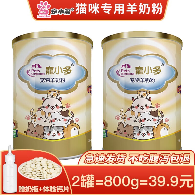 宠小多宠物羊奶粉 狗狗猫咪新生幼猫犬怀孕哺乳期羊奶粉 小猫小狗幼犬成犬专用宠物营养品 猫咪专用款800g
