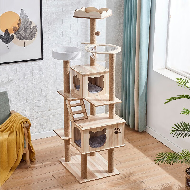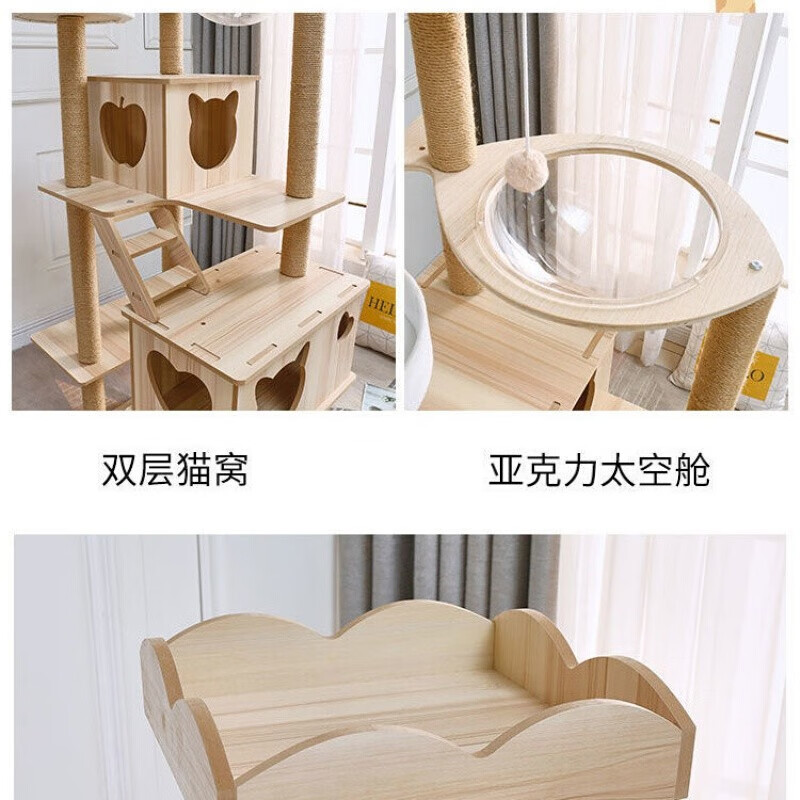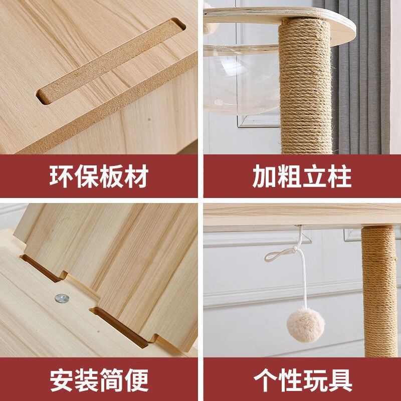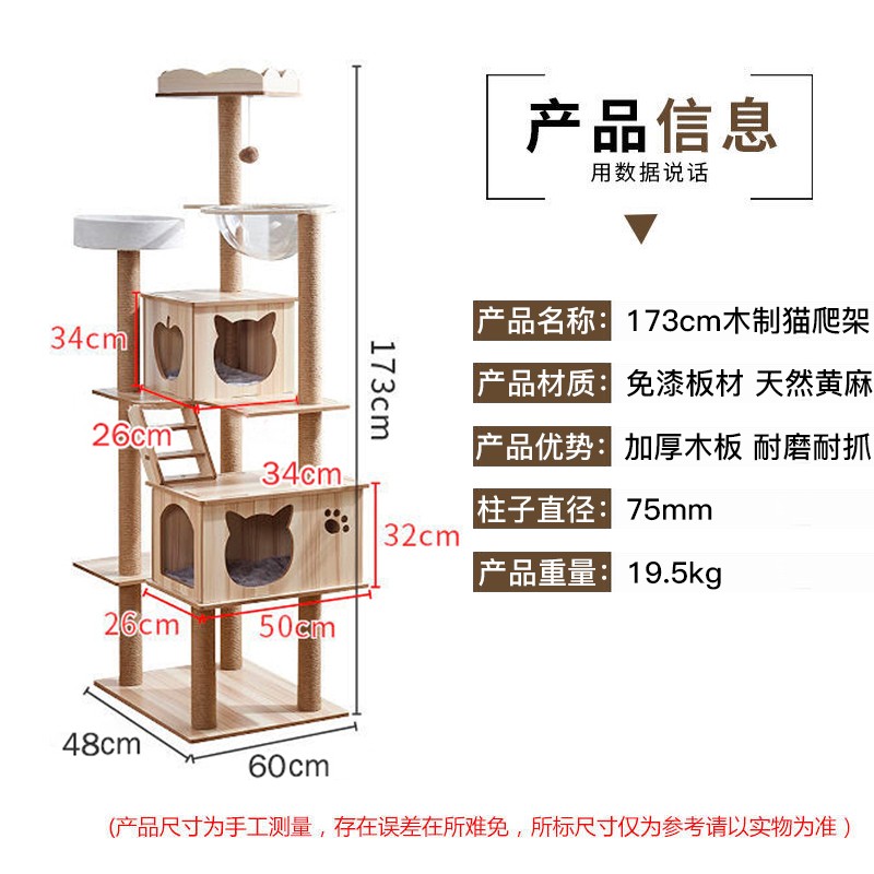 【木质加厚加粗】彩色猫爬架四层大型豪华猫玩具猫架子剑麻宠物猫窝猫抓板猫抓柱猫猫爬树猫咪磨爪坏小宠 1.73米木质加高款