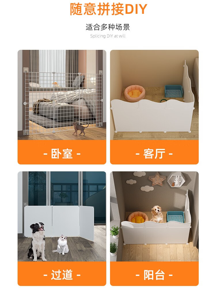 隔断围栏宠物狗笼子挡板屏风防止小猫咪栏门上床室内兔子护栅栏门 6片挡板 围栏 升级加高加固款