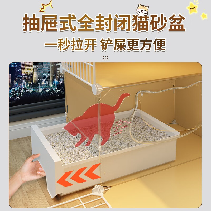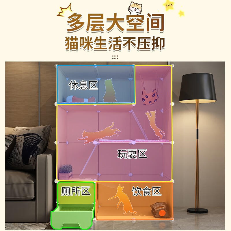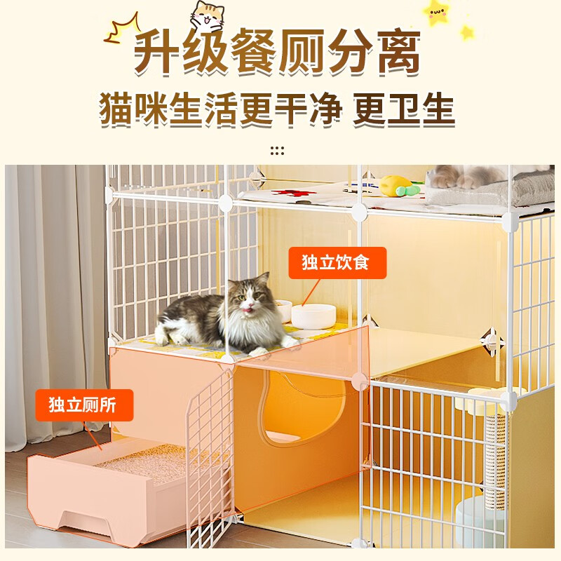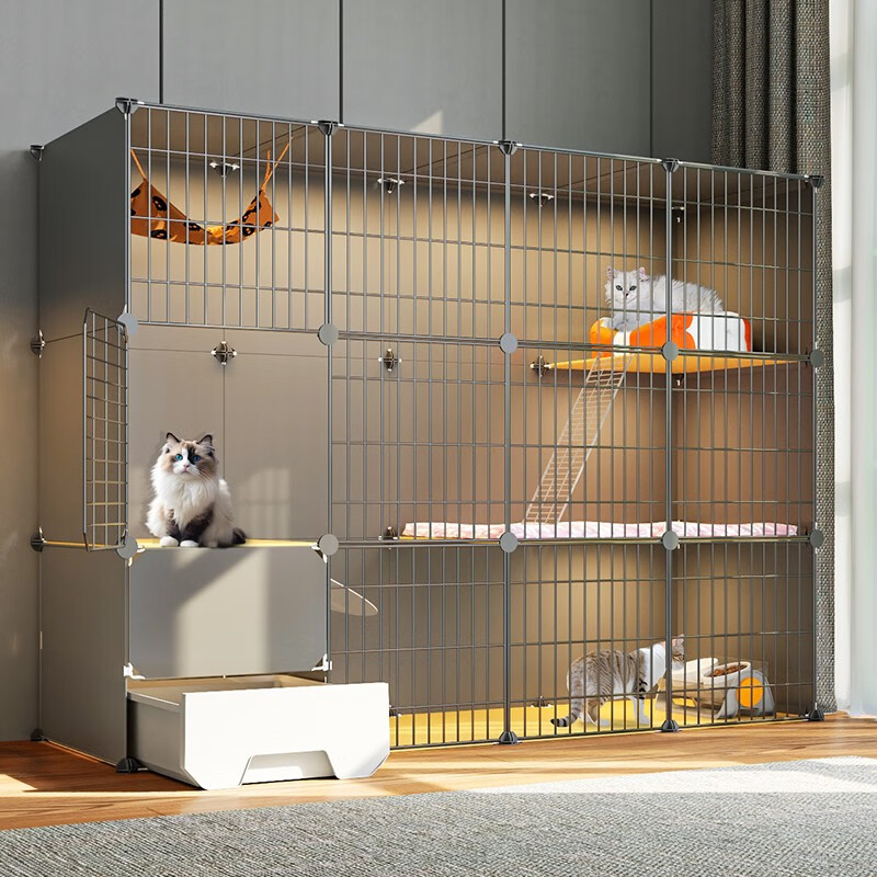 蔻丝猫笼子超大号猫柜家用猫窝别墅带厕所一体室内带猫砂盆宠物猫舍屋 【黑4层-加深喵星堡】145*49*111 饮食款:猫窝 猫碗 猫砂盆带铲