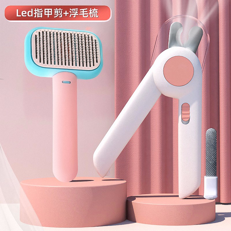 hoopet猫梳子猫咪去浮毛梳毛刷子宠物狗狗猫毛清理器幼猫短长毛按摩针梳脱毛开结除毛撸猫神器刮毛用品 蓝粉梳子 led指甲剪(可照血线)
