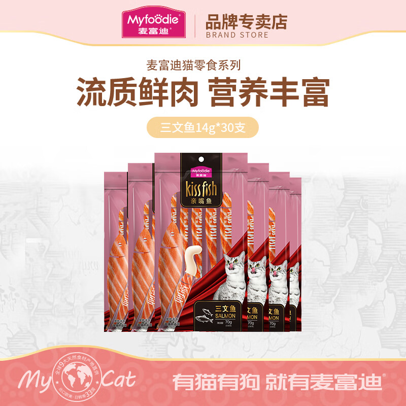 麦富迪猫条猫零食 湿粮亲嘴鱼营养补水幼猫肉酱 三文鱼14g*30支