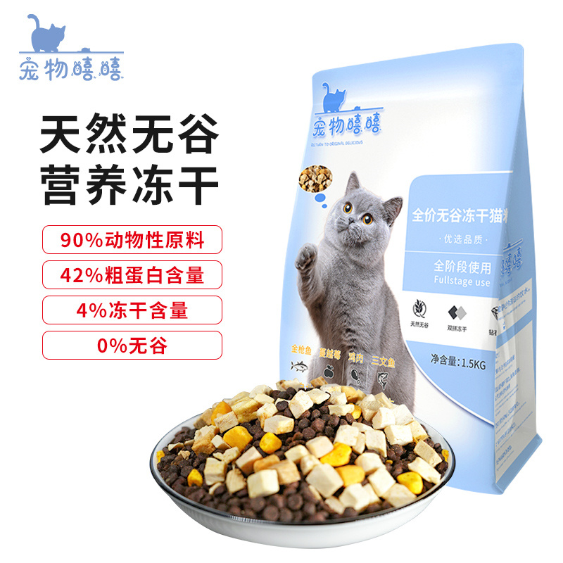 宠物嘻嘻 90%鲜肉无谷冻干猫粮全价猫粮 6种肉成猫幼猫全阶段通用 鲜肉双拼冻干全阶段天然无谷猫粮1.5kg