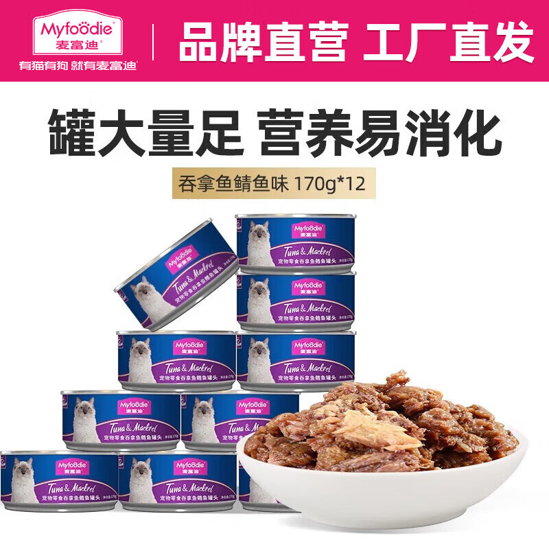 麦富迪 猫罐头 宠物猫咪零食猫湿粮罐头 吞拿鱼鲭鱼味 170g*12