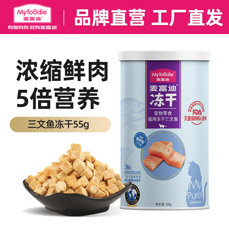 麦富迪 猫零食 冻干猫咪零食成猫幼猫通用宠物猫冻干 三文鱼冻干55g
