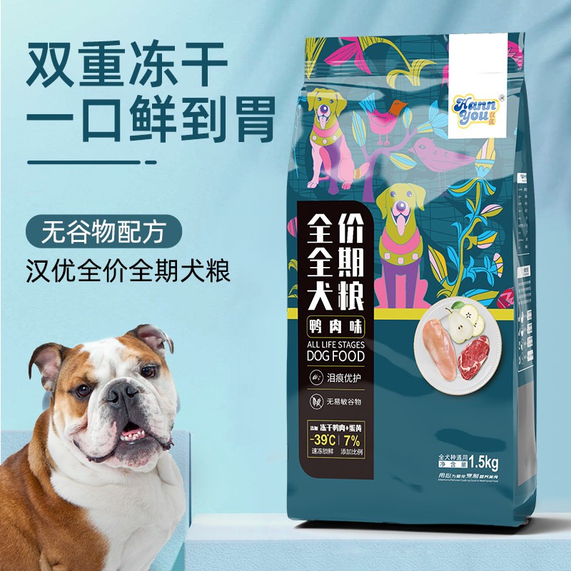 汉优冻干无谷鸭肉蛋黄双拼贵宾泰迪金毛拉布拉多幼犬成犬全价粮1.5kg