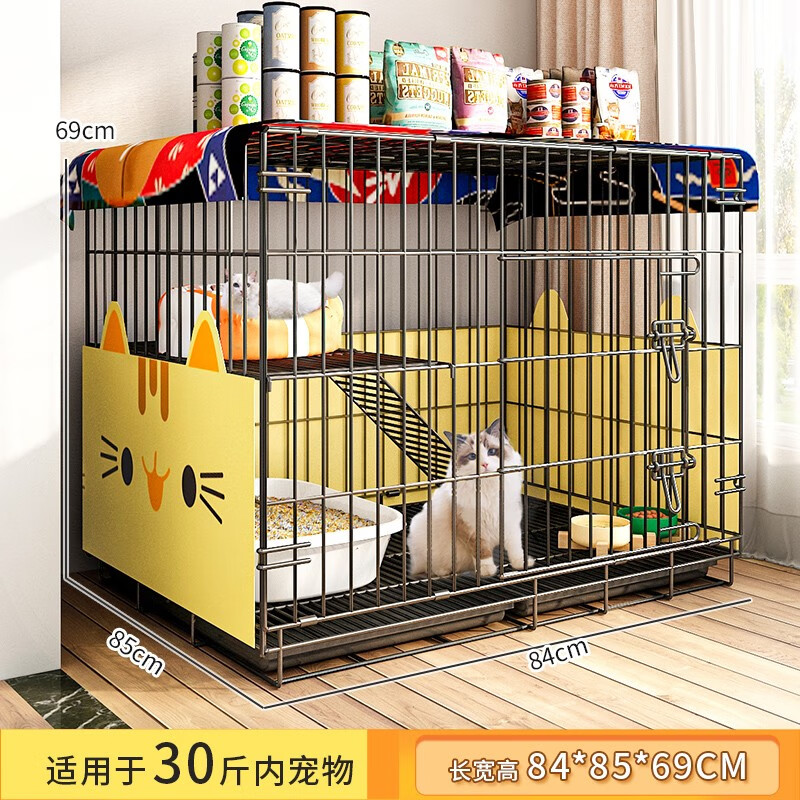 蔻丝折叠免安装加粗猫笼子家用大号带厕所一体防外溅砂室内省空间猫笼 超大双层【85*60*70】活动不拘束 至尊款【猫砂盆带铲 瞄舍款】
