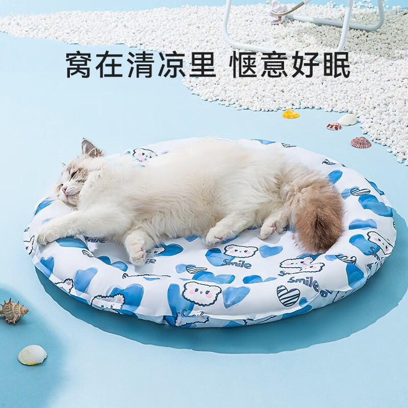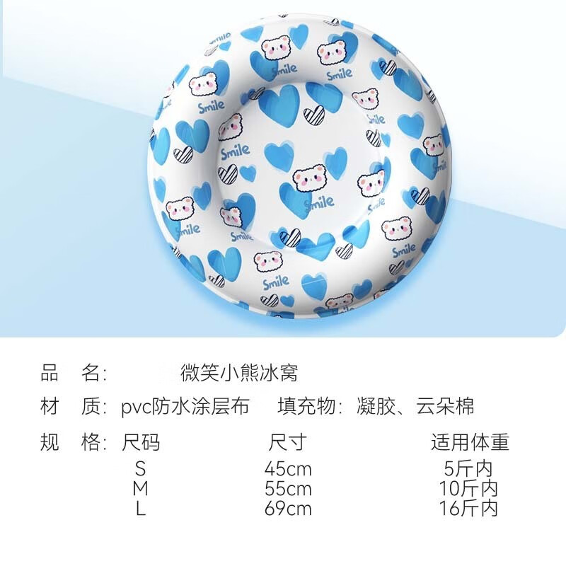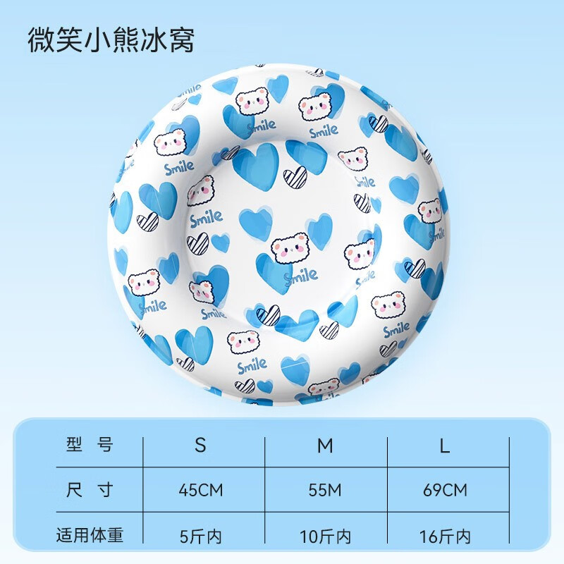 PETDX宠物冰窝猫咪冰垫狗狗凉席夏天降温垫子中小型犬解暑狗窝猫窝睡垫 蓝色微笑小熊 S:45*45cm(建议体重5斤内)