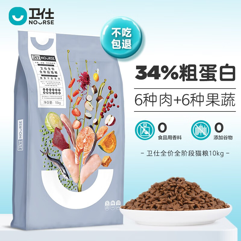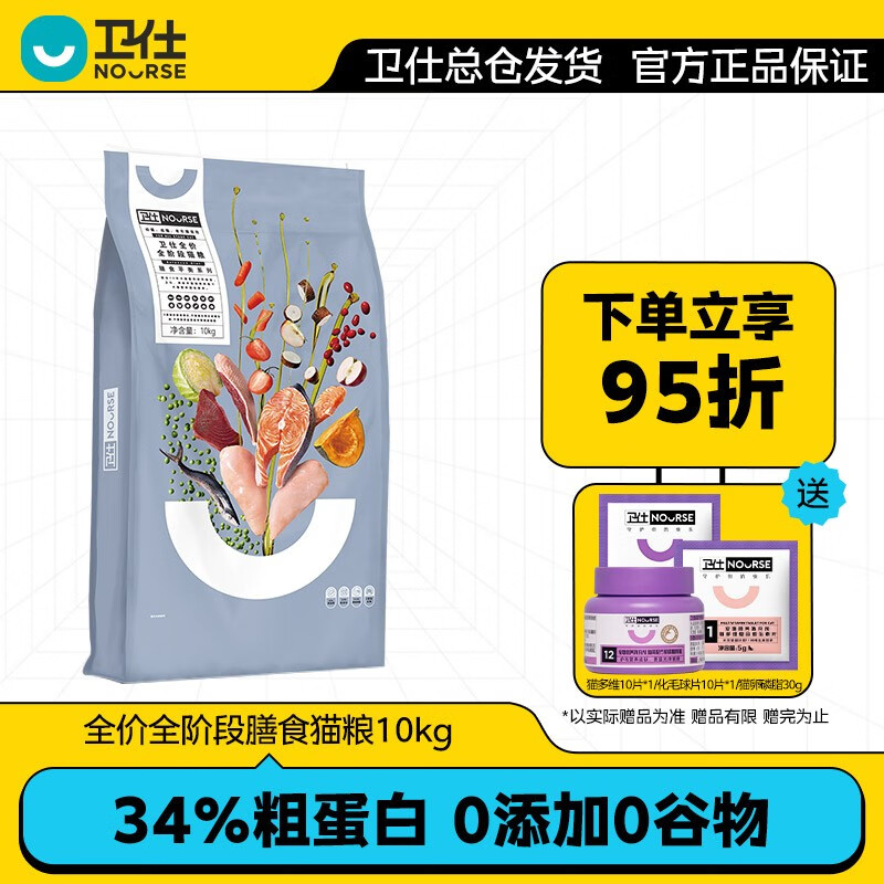卫仕全阶段猫粮 全价幼猫成猫 布偶英短田园猫通用型 卫士0谷物猫粮 【人气热选】全猫粮10kg
