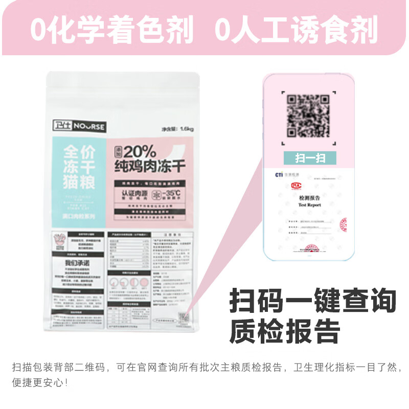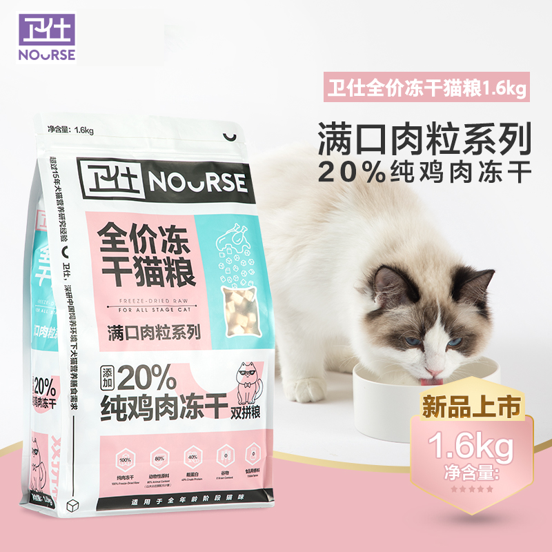 卫仕冻干双拼全阶段猫粮1.6kg成猫幼猫增肥无谷天然猫咪主粮卫士营养 6个月以上 卫仕鸡肉冻干全期猫粮1.6kg【20%鸡肉冻干-震
