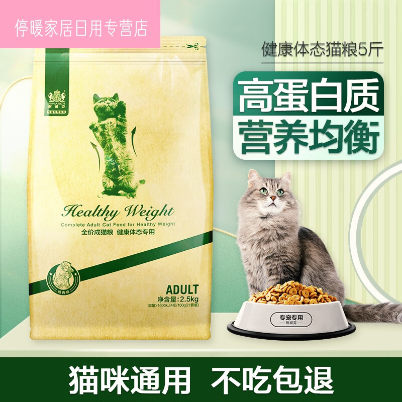 耐威克(Navarch) 健康体态成猫猫粮5kg10斤成年蓝猫美短美毛通用型天然猫 5kg 健康体态猫粮