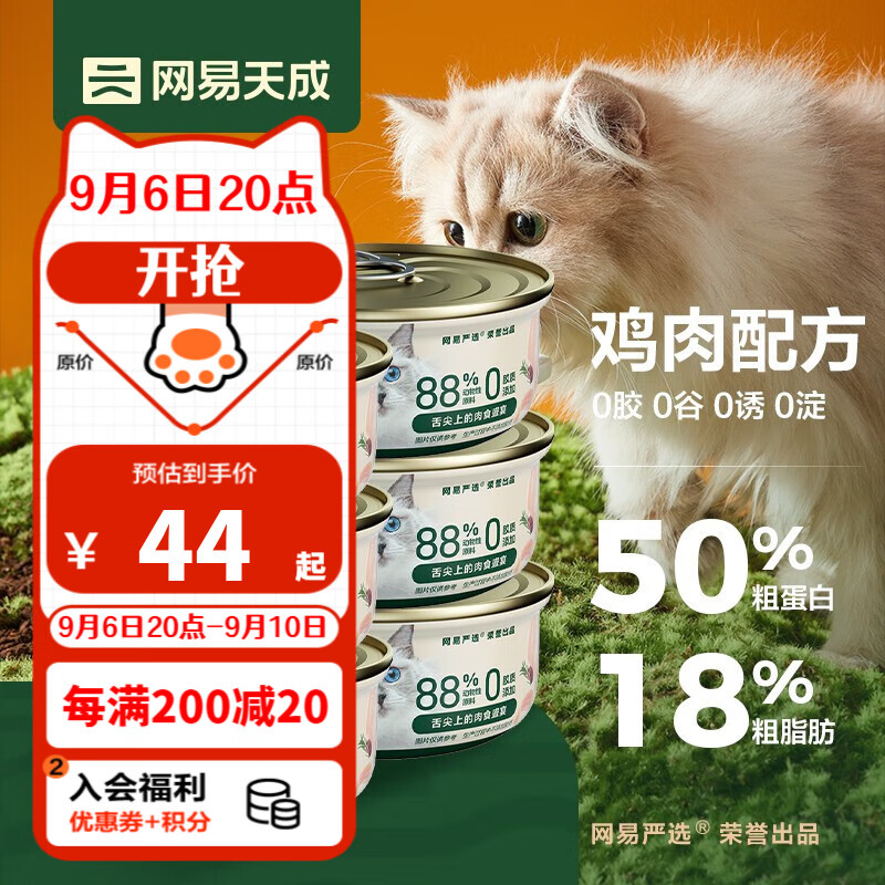 网易天成宠物猫罐头全价猫用主食罐猫粮猫湿粮美味 好吸收成猫幼猫主食 鸡肉罐85g*6罐