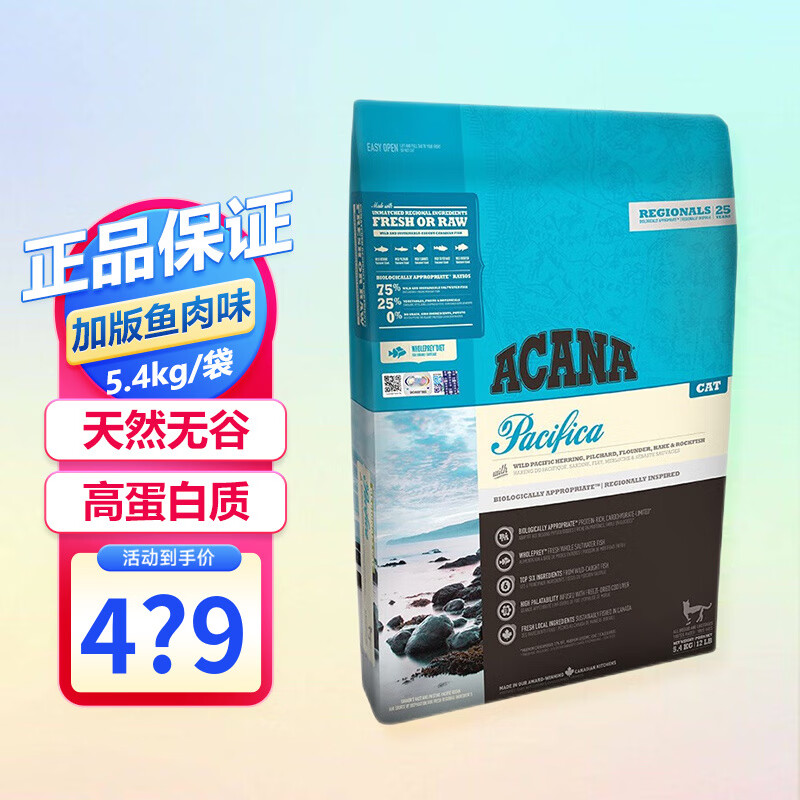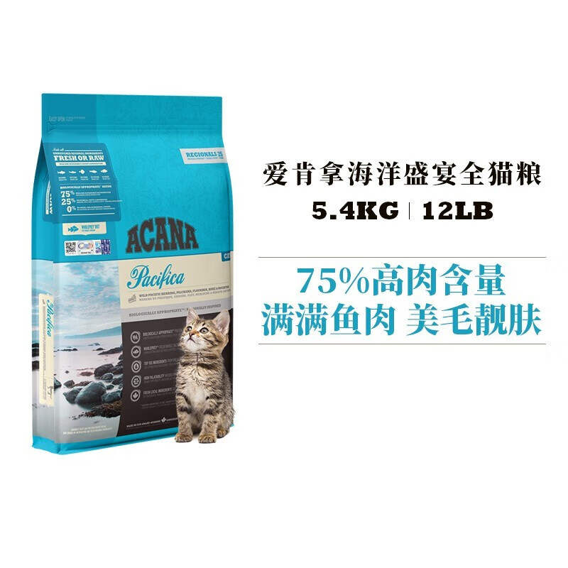 爱肯拿(ACANA)猫粮 牧场盛宴鸡肉味天然无谷海洋鱼猫粮 【加版仅溯源标】鱼肉味-5.4kg