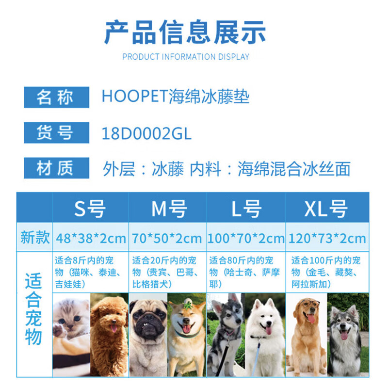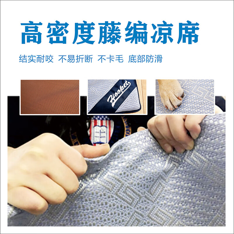 华元 宠物狗狗夏天专用耐咬凉席冰垫子金毛大中小型犬猫通用冰丝夏季睡垫窝垫大狗小狗狗垫子夏天 浅蓝色冰藤凉席垫 L:100*70cm适合80斤内宠物