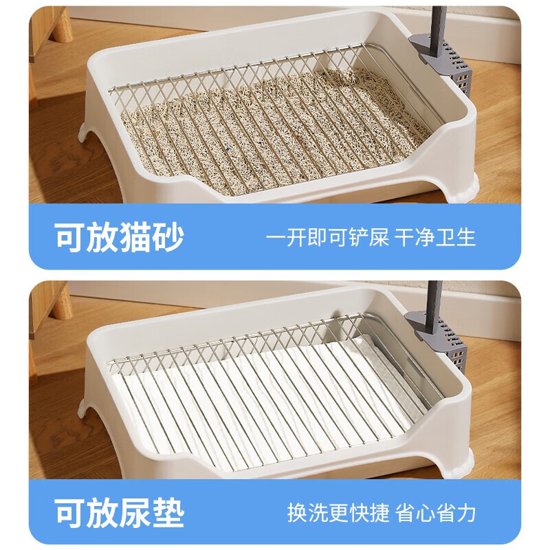 凡佰酷狗狗厕所中小型犬专用尿盆防踩屎不锈钢狗砂盆小狗大小便拉屎神器 绅士灰18mm6-12斤含铲子
