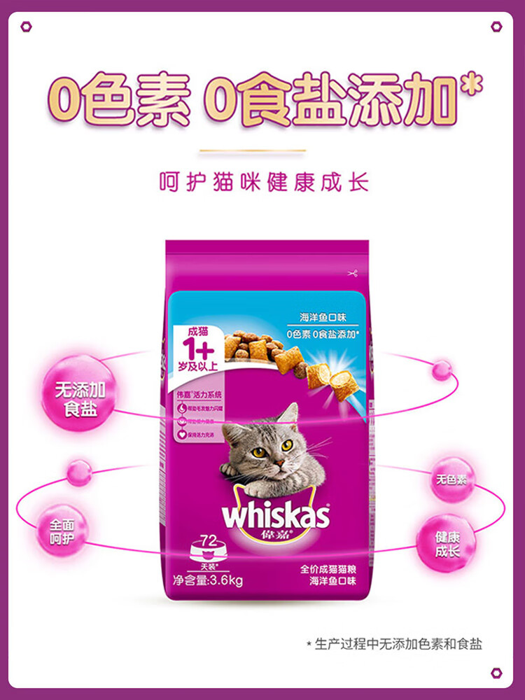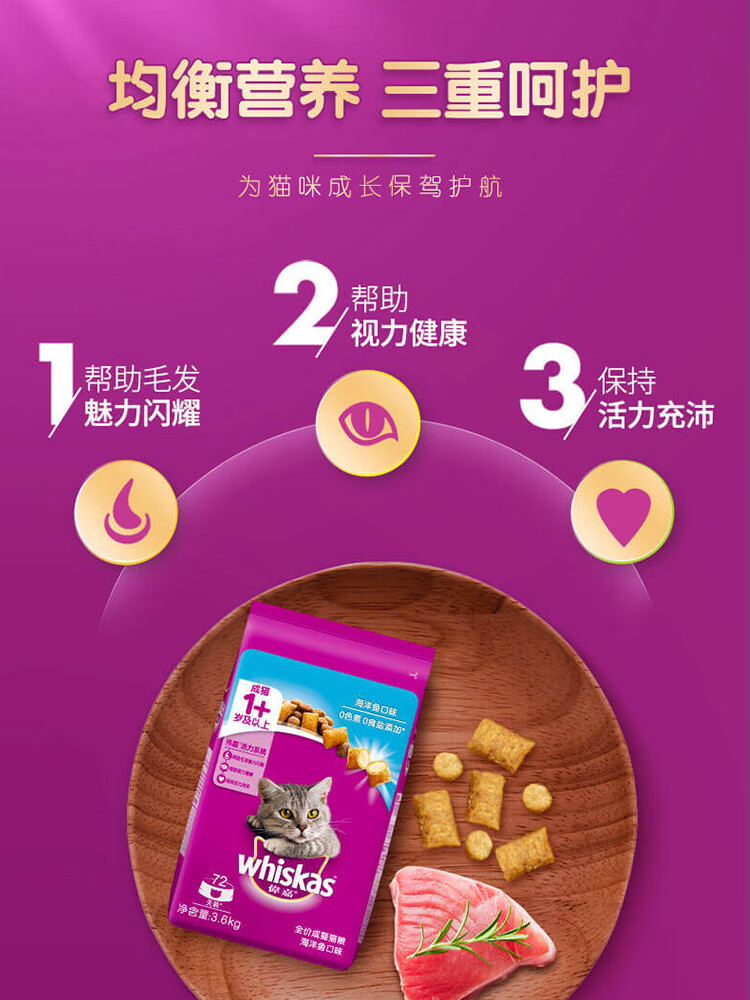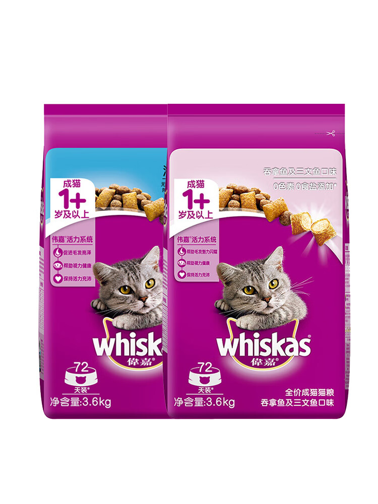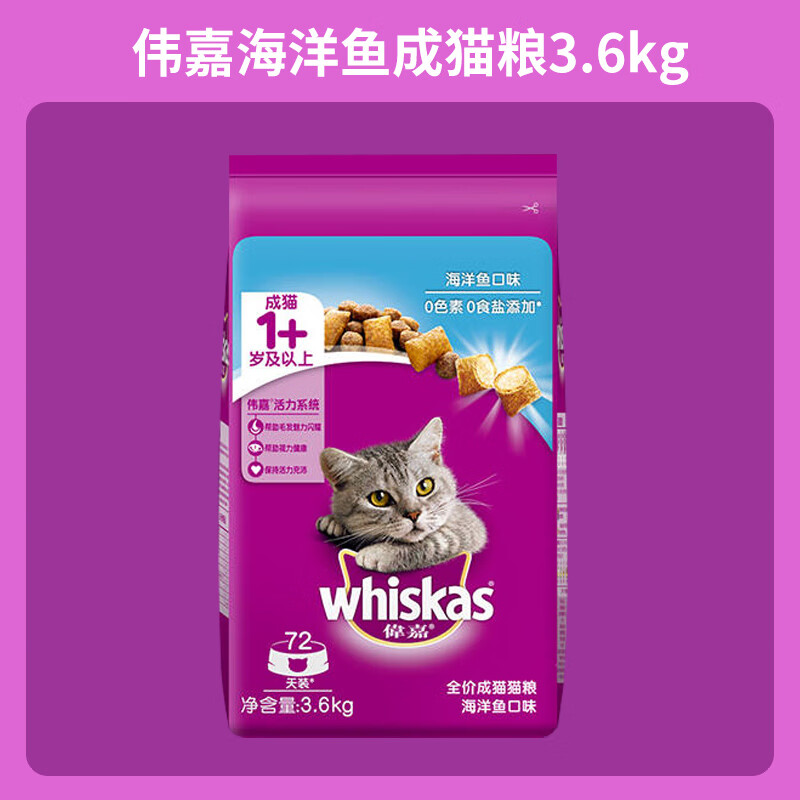 伟嘉(whiskas)猫粮成猫 海洋吞拿三文3.6kg美短银渐层猫咪营养粮10kg 【单.包装】全价海洋味成猫粮3.6 0k.g 规格以选项为准