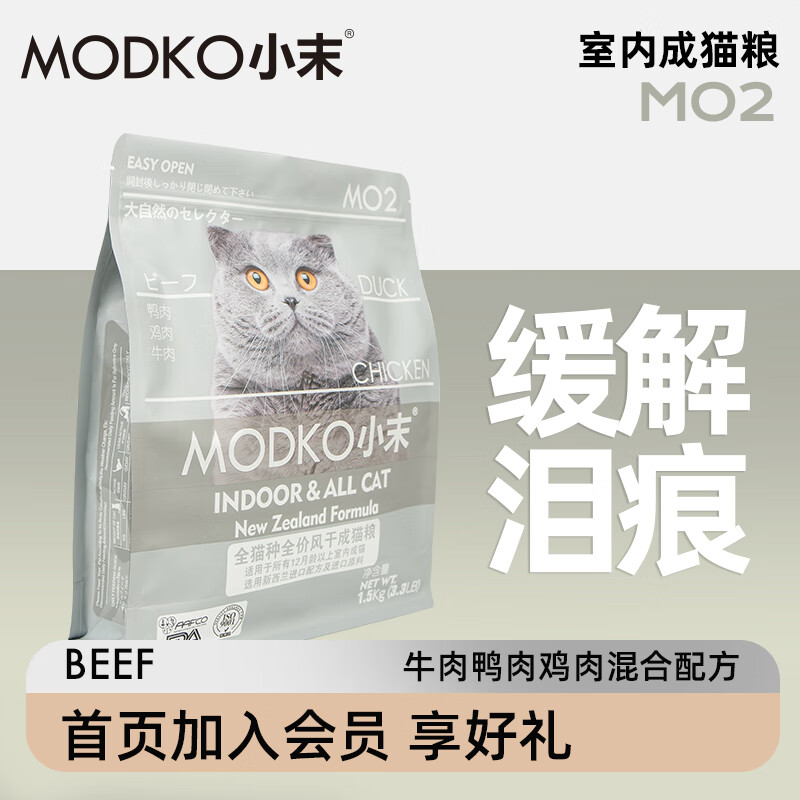 小末MODKO宠物全价风干双拼主粮挑嘴配方母猫幼小猫汤恩贝1.5/10kg MO2风干双拼室内成猫粮 1.5KG/包