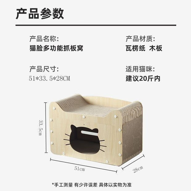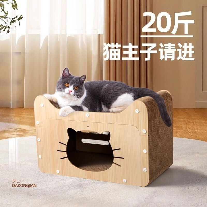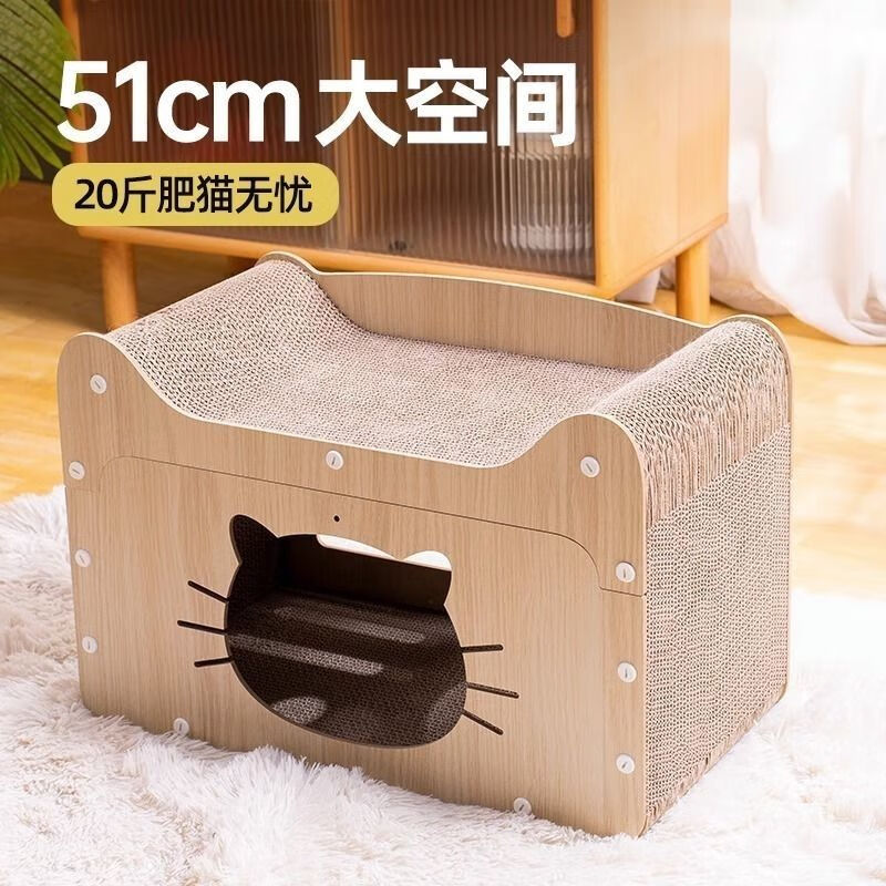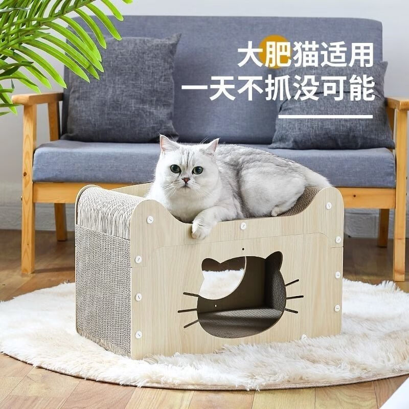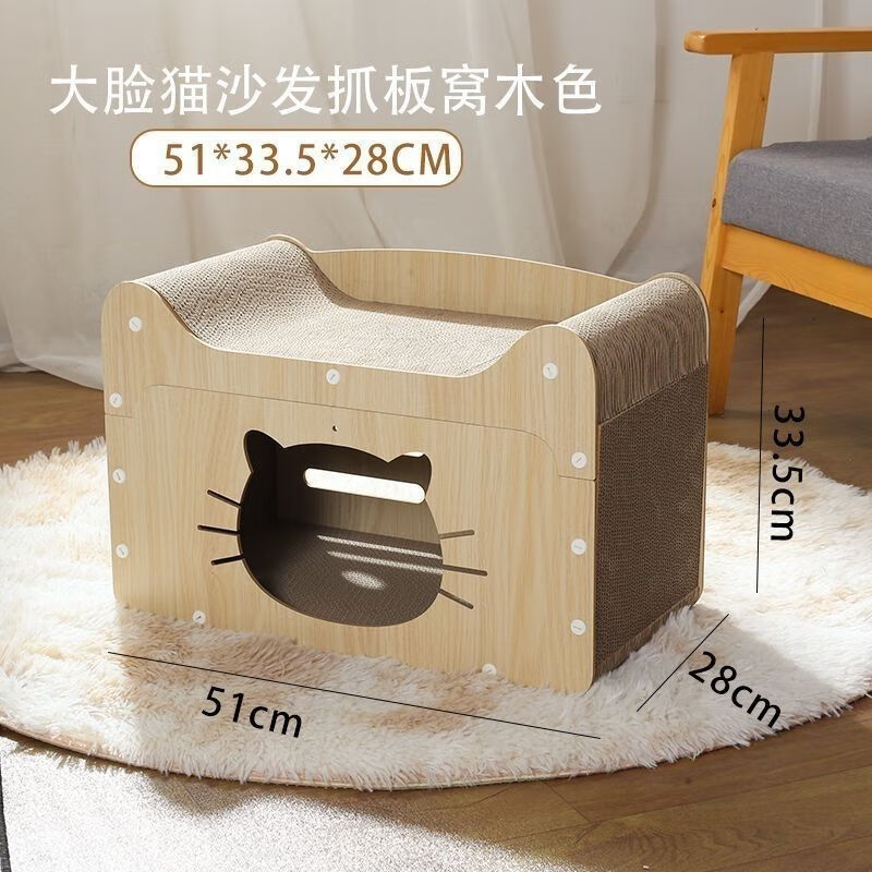 猫抓板猫窝一体猫抓盆耐磨耐抓不掉屑圆形特大号瓦楞纸猫咪用玩具 大脸猫猫抓板窝