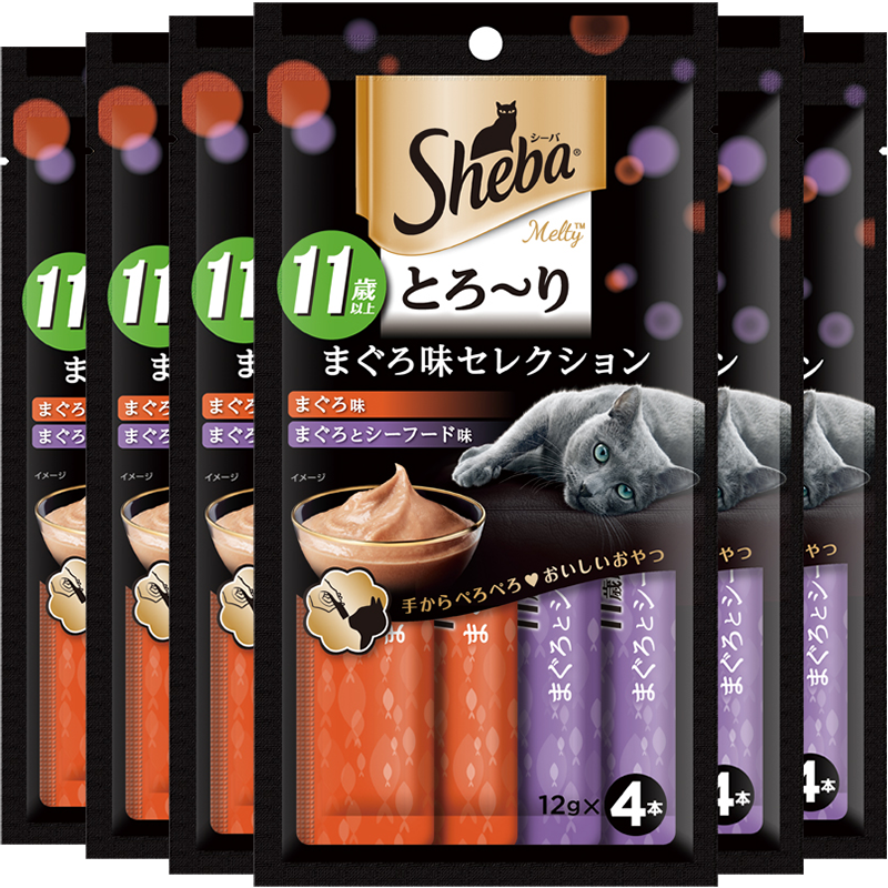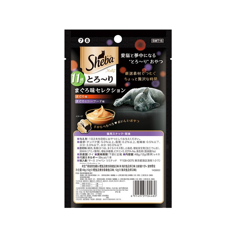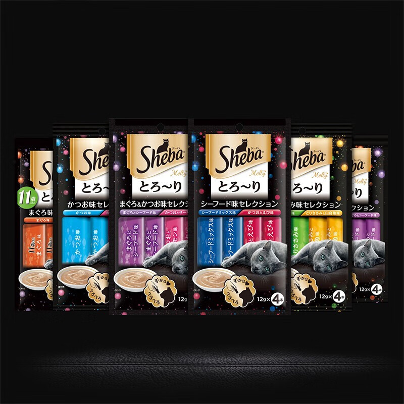 希宝Sheba猫湿粮 成猫大龄猫宠物零食猫条 泰国进口metly舔食软包 吞拿鱼海鲜老年12g*24支(6包)