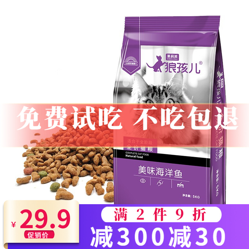 狼孩儿猫粮10kg幼猫粮成猫粮20kg公斤装室内家猫猫流浪英短美短加菲猫波斯折耳猫粮5kg 5kg(美味海洋鱼10斤装)