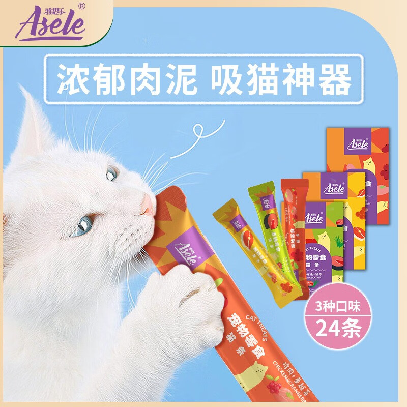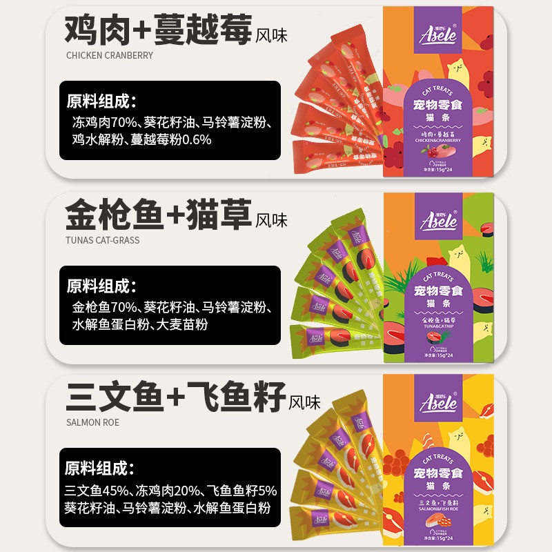 宠怡雅思乐猫零食猫咪湿粮猫吸条24支化毛美毛呵护肠胃猫粮拌饭增肥 三文鱼 飞鱼籽-24支