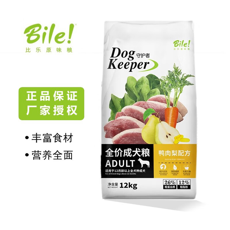 【比乐狗粮】守护者系列成犬幼犬泰迪比熊斗牛金毛拉布拉多哈士奇柴犬通用12kg 鸭肉 梨成犬粮12kg