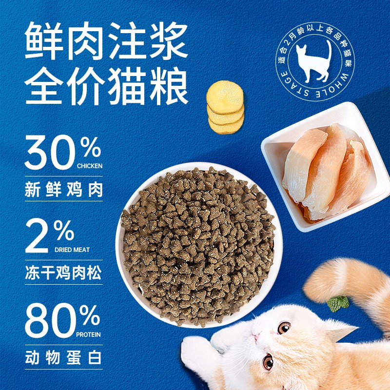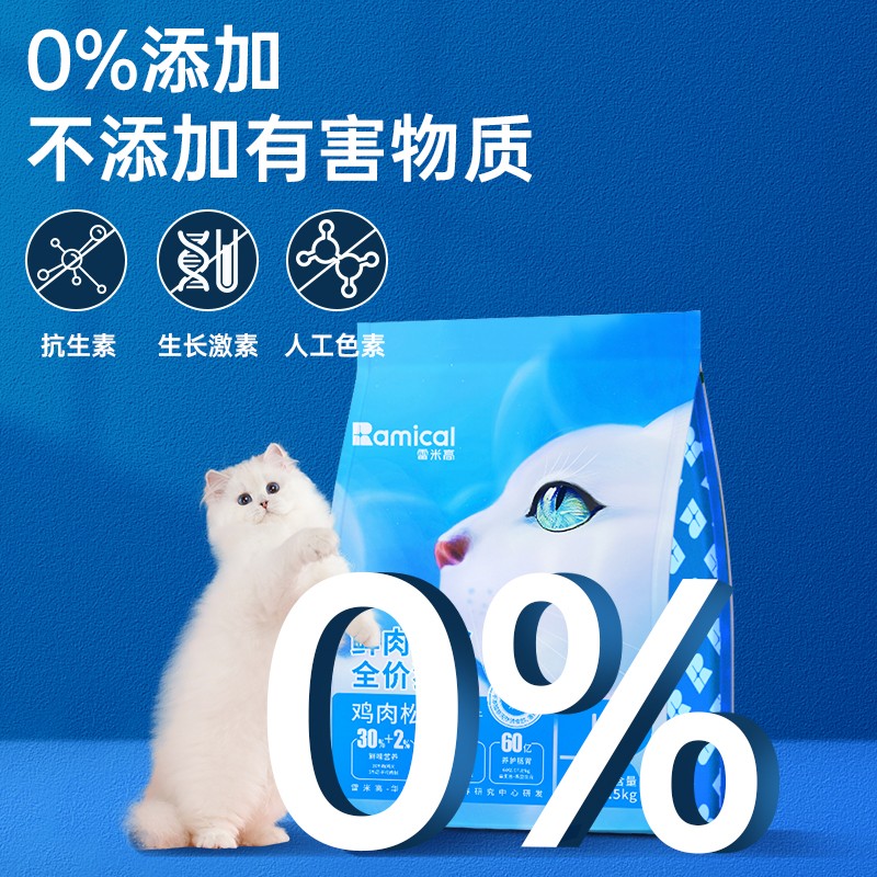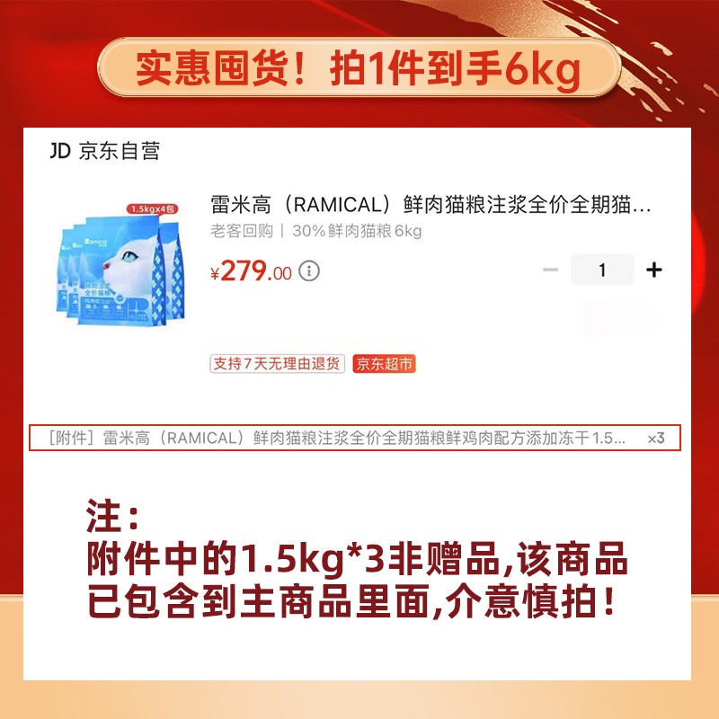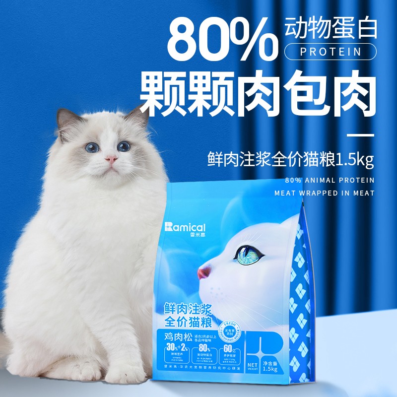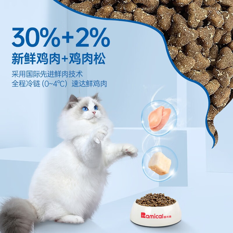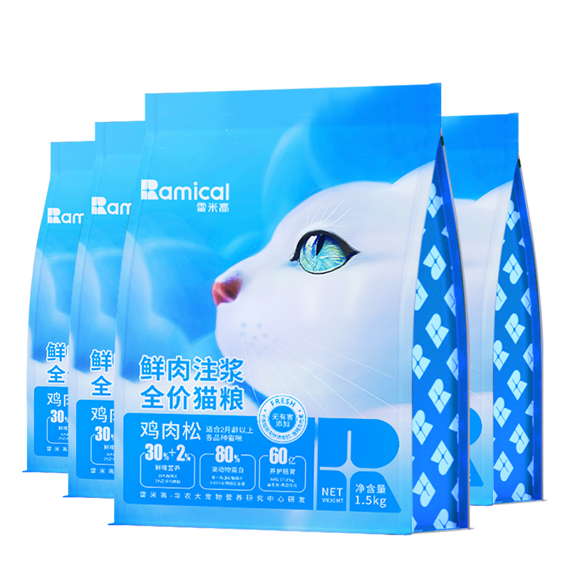 雷米高(RAMICAL)鲜肉猫粮注浆全价全期猫粮鲜鸡肉配方添加冻干1.5kg*4包
