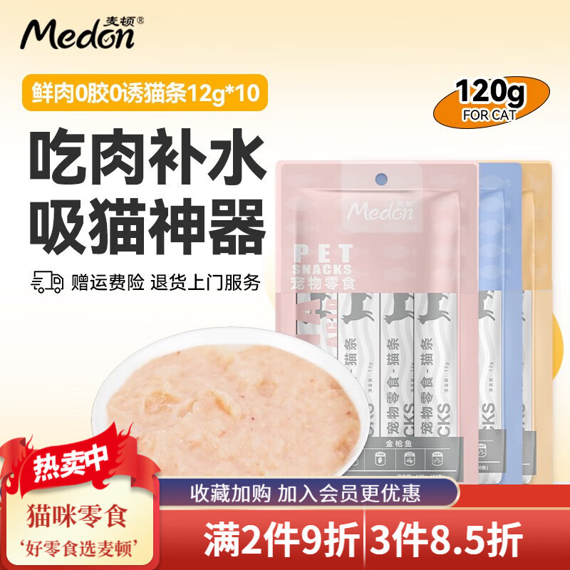 麦顿 猫条 猫零食猫罐头肉泥幼猫成猫孕猫营养健康食品湿粮宠物零食 金枪鱼猫条 120g(10条)