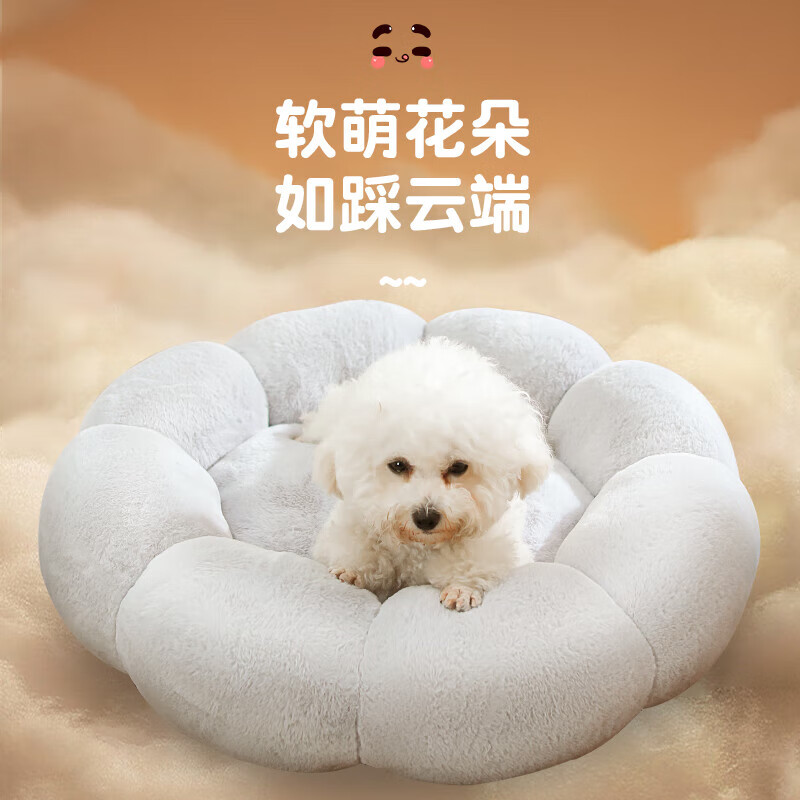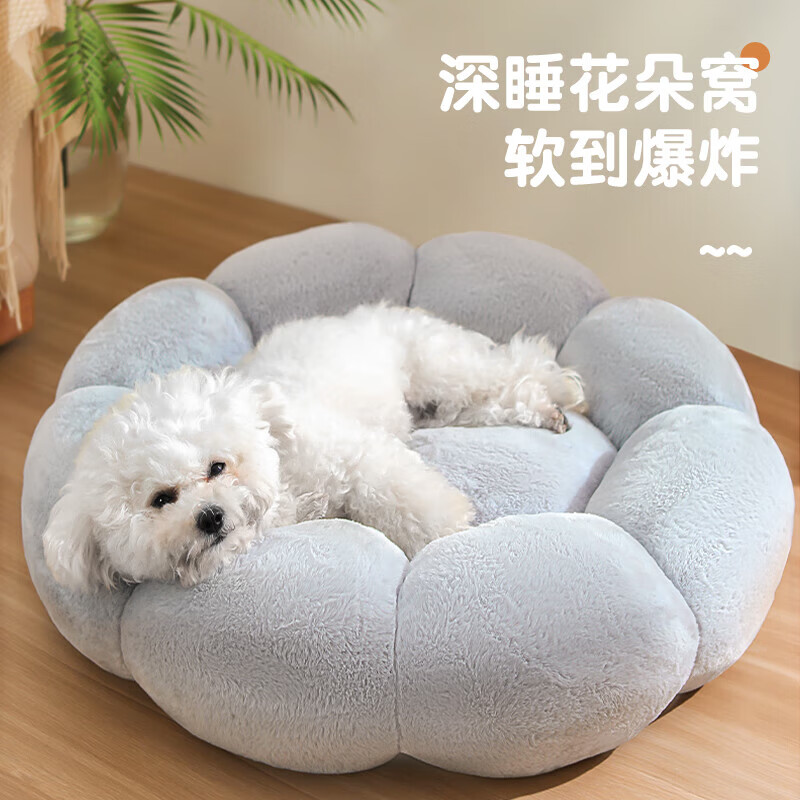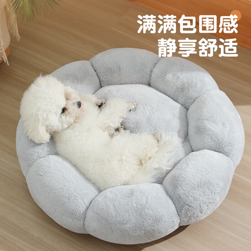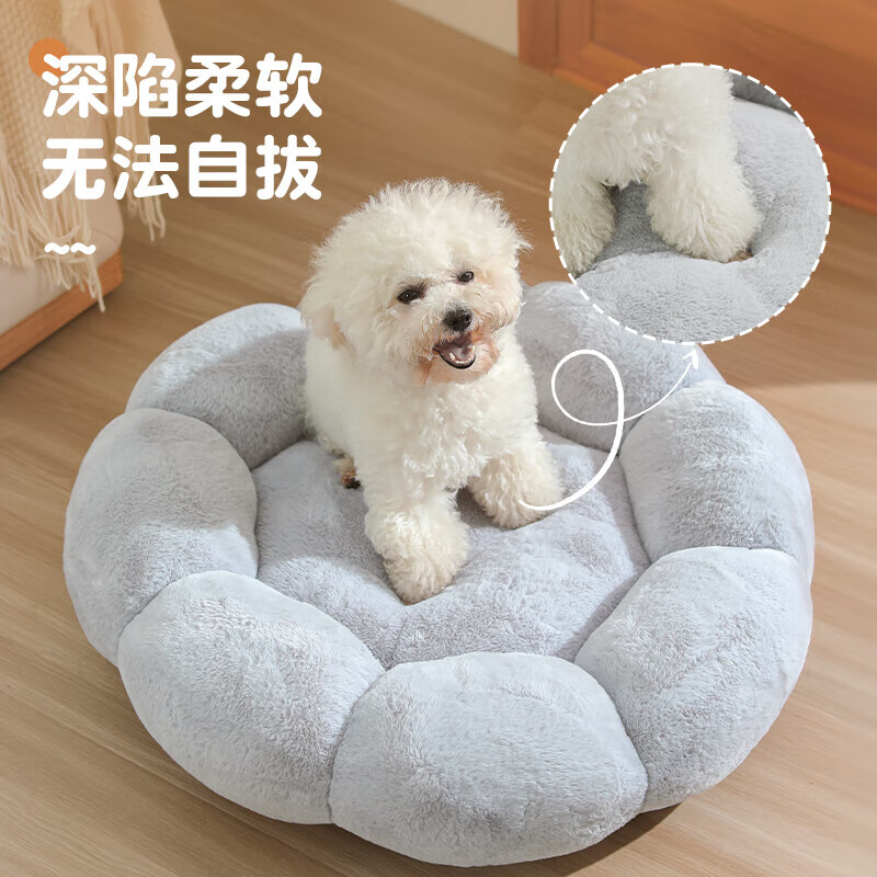 宠淘气花朵狗窝四季通用小型犬比熊雪瑞纳宠物狗狗冬季保暖狗床冬窝 浅灰 大号建议15斤内中小型犬