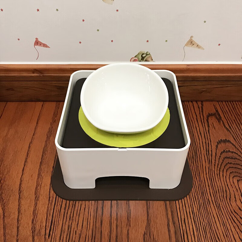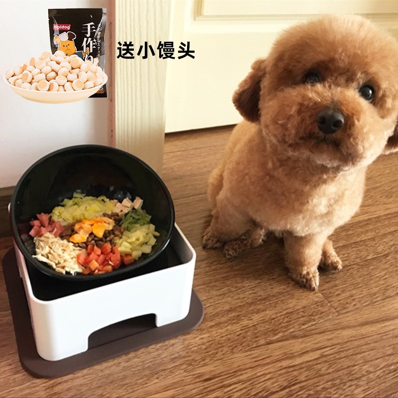 狗碗陶瓷法斗碗日式宠物餐桌泰迪狗狗食盆扁脸猫碗防滑斗牛碗斜口 小号白色碗(黄色餐垫) 餐桌 小馒头(1包)