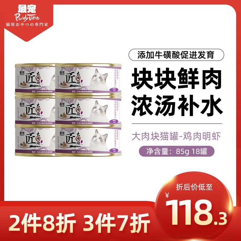 澳洲品牌 最宠 (Paddy Time)猫罐头 宠物零食罐猫粮猫湿粮成幼猫咪增肥营养汤罐发腮多口味 鸡肉明虾汤罐85g*18罐