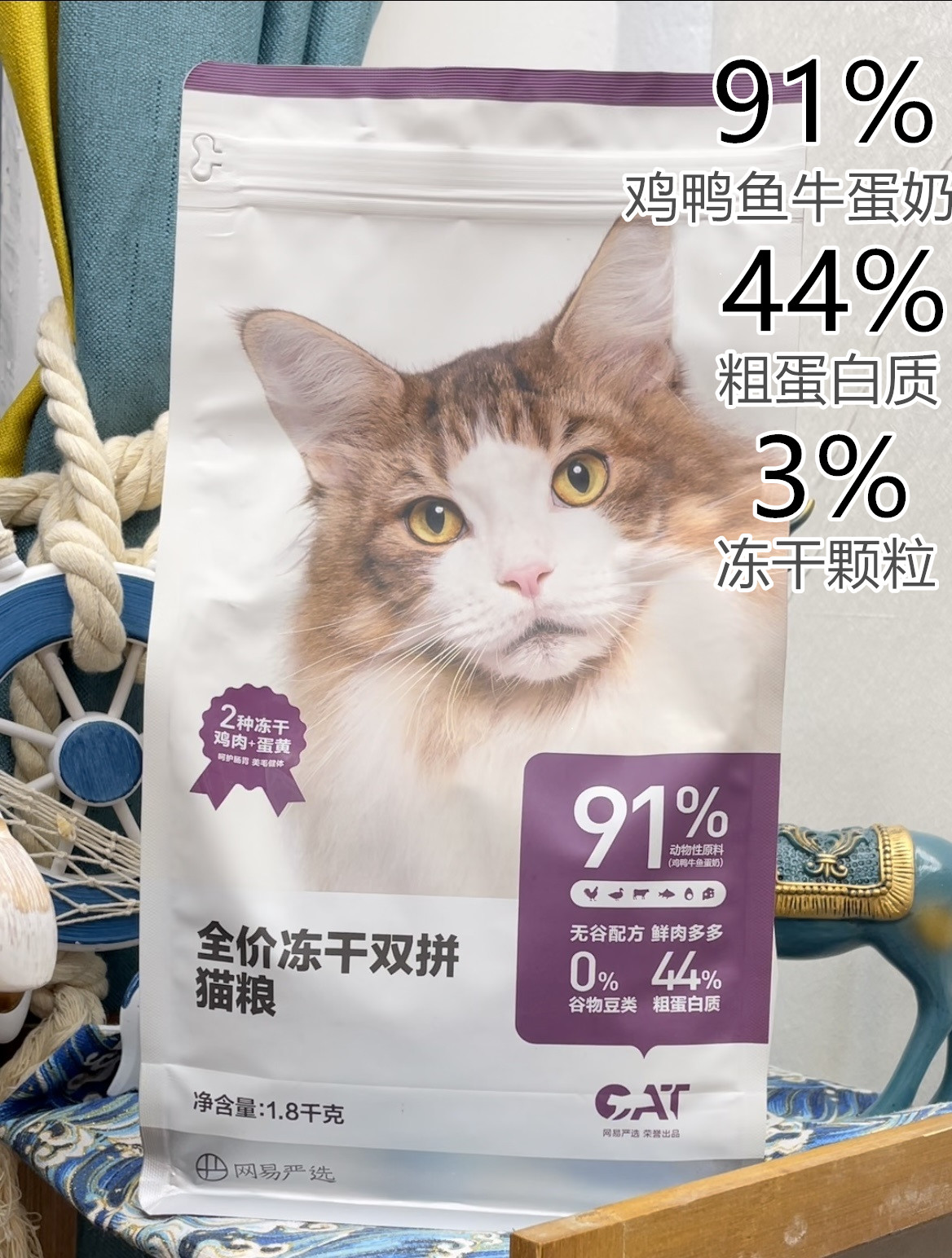 网易严选 全价冻干双拼猫粮 成幼猫可食冻干粮 1.8kg/袋 增重增肥