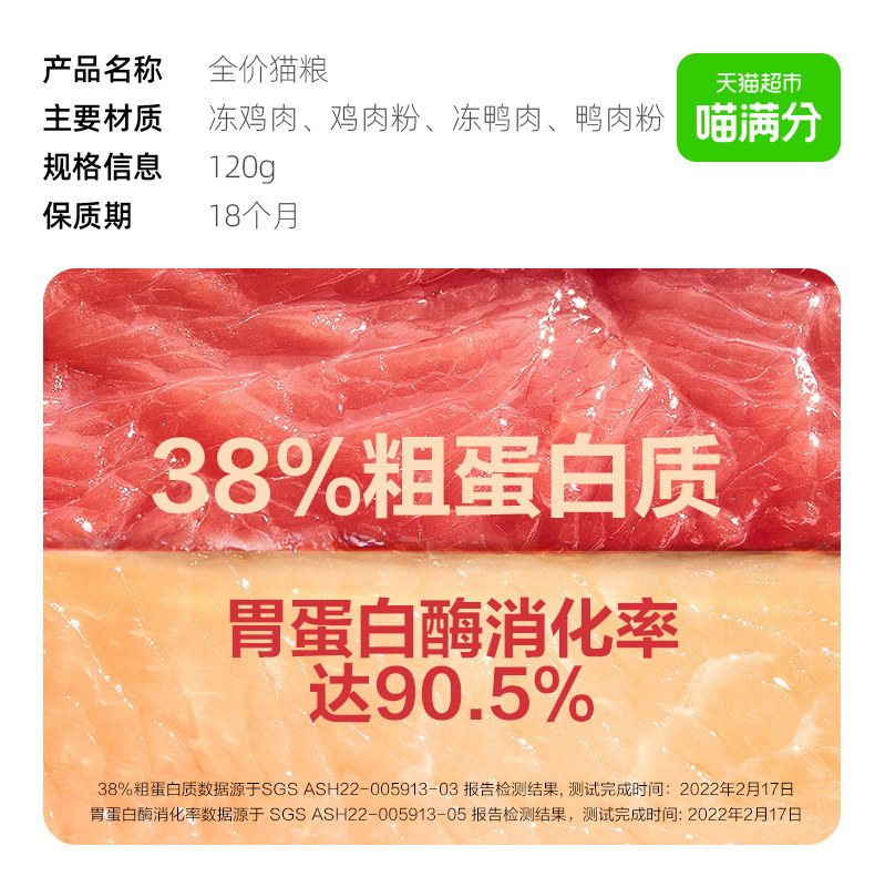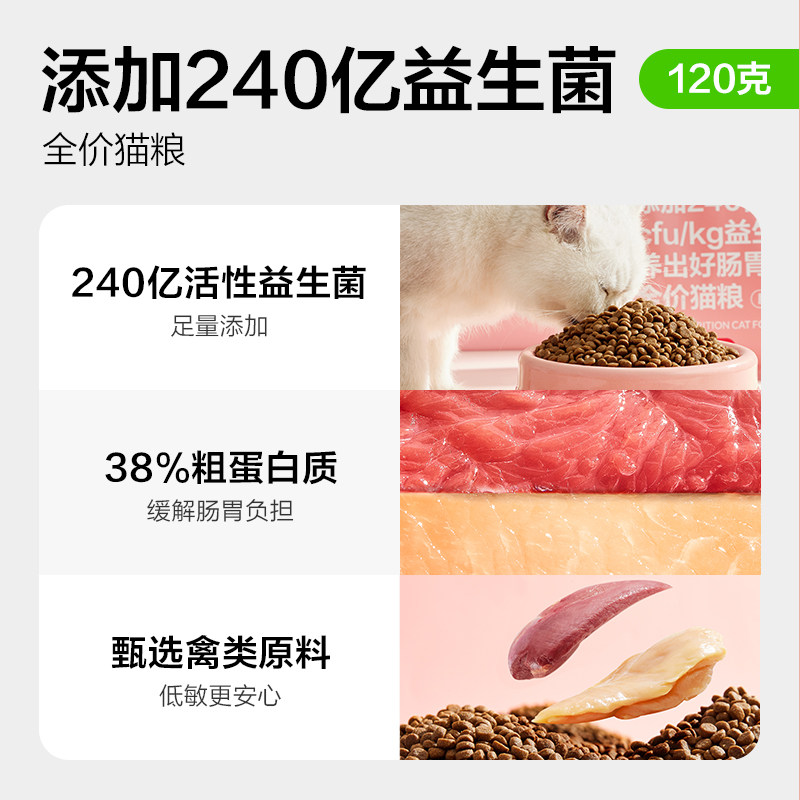 【喵满分】自有品牌全价全期成猫幼猫240亿益生菌猫粮120g鸡肉