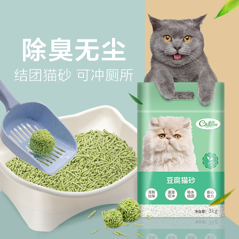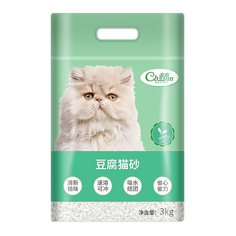 宠怡豆腐猫砂3kg猫砂豆腐砂抑菌除臭无尘猫沙易吸收快结团可冲厕所 绿茶