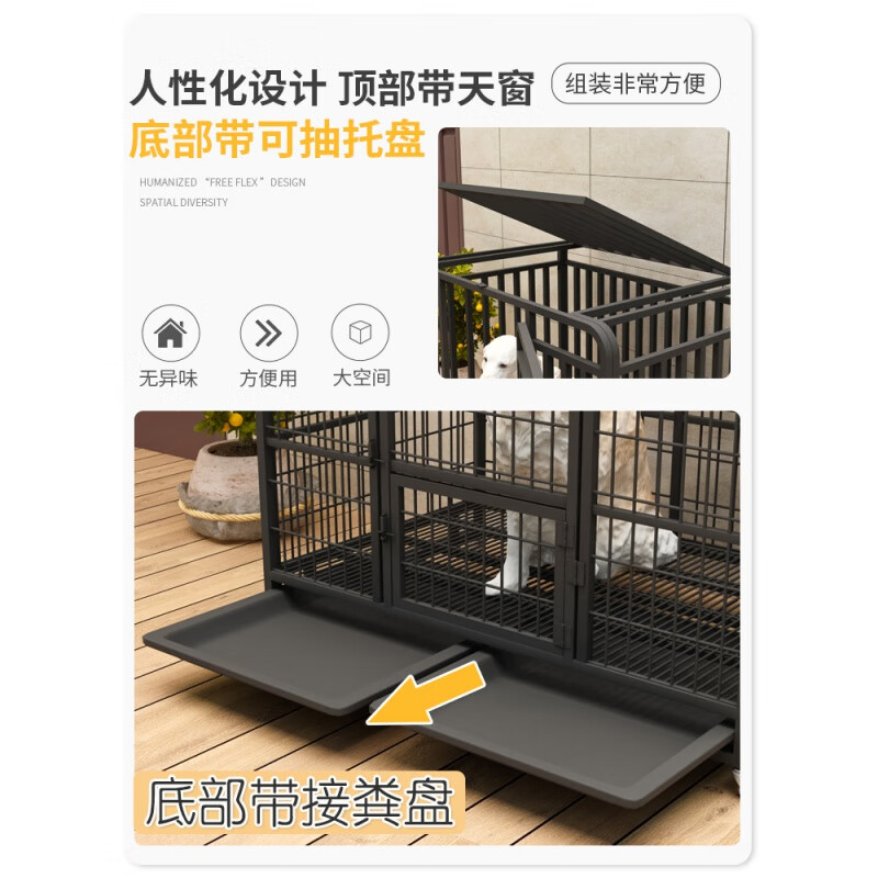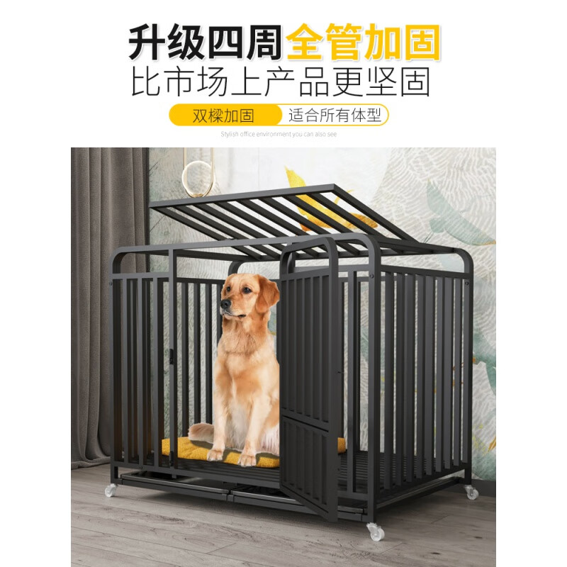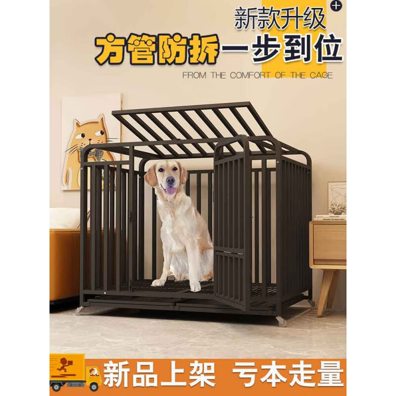凡佰酷全管狗笼子中型犬大型犬室内带厕所金毛萨摩耶边牧拉布拉狗笼大型 黑色普通款 S-小型61*45*58cm泰迪柯基小型犬