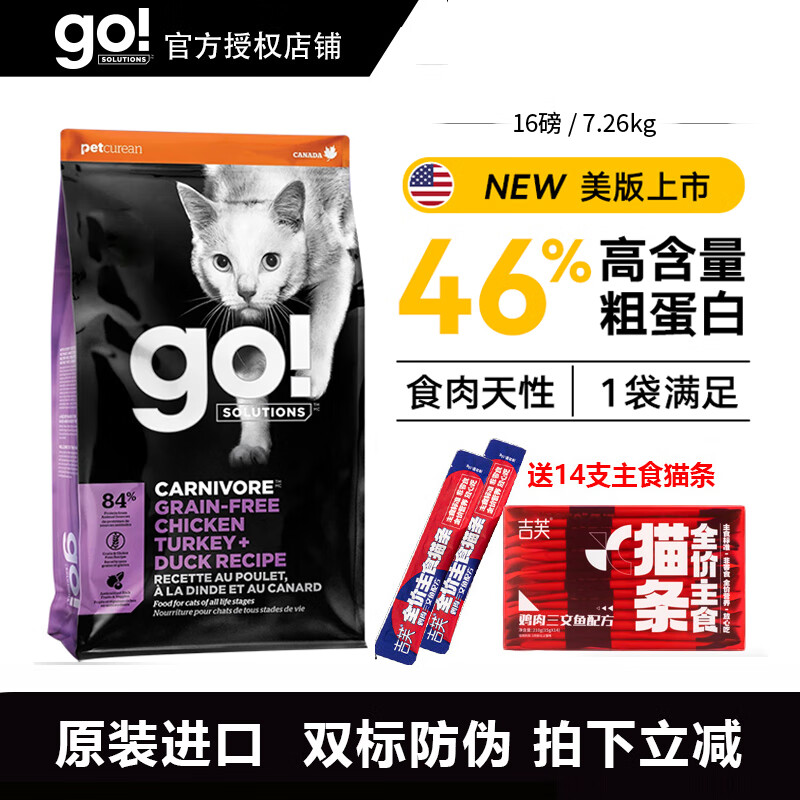 GO!SOLUTIONS猫粮 进口猫主粮go无谷九种肉猫粮 三文鱼全猫粮成猫幼猫营养食品 九种肉 16磅/7.26kg【现货】