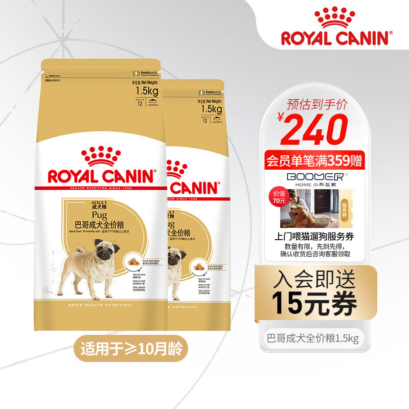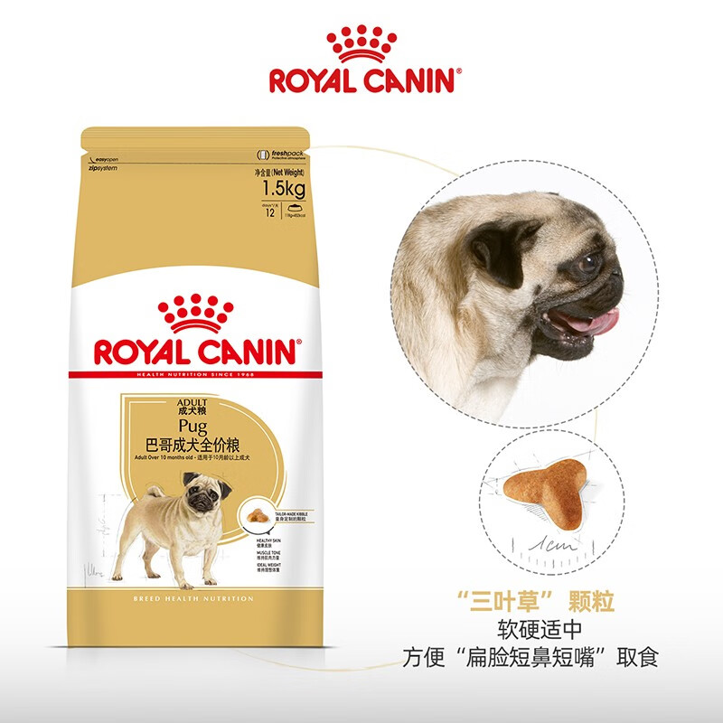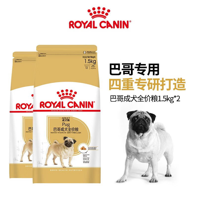 皇家狗粮(Royal Canin) 巴哥成犬全价粮 PA29 【超值推荐】1.5kgX2