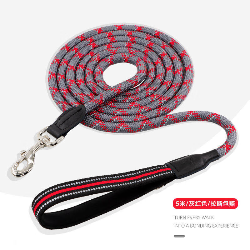 【速发】2米3米加长狗狗牵引绳防爆冲狗链子中型大型犬柯基金毛训练遛狗绳 5米加长绳(红灰色) 12MM绳粗(拉断包赔)