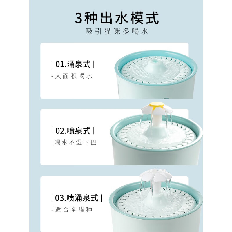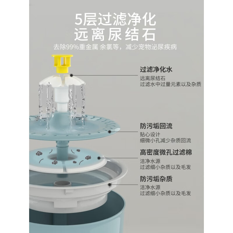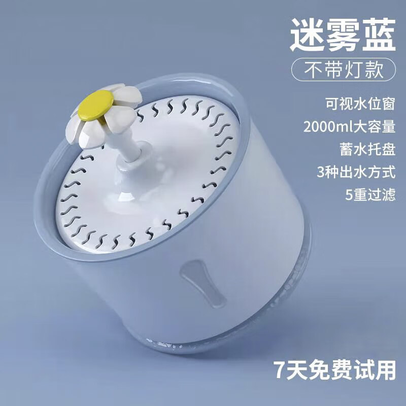 2022新款hoope猫咪饮水机猫咪饮水机自动循环活水宠物狗狗喝水器流动碗不湿嘴喂水神器用品 迷雾蓝【不带灯 升级静音 不漏电 活性炭滤芯】