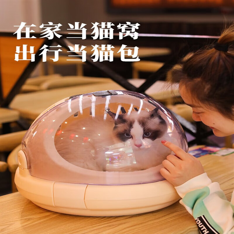风宠猫包太空舱猫笼子猫咪夏天宠物外出猫窝两用便携手提包宠物用品 温馨 米奇色(0-16斤猫咪) 多功能航空箱包 兔毛窝标配